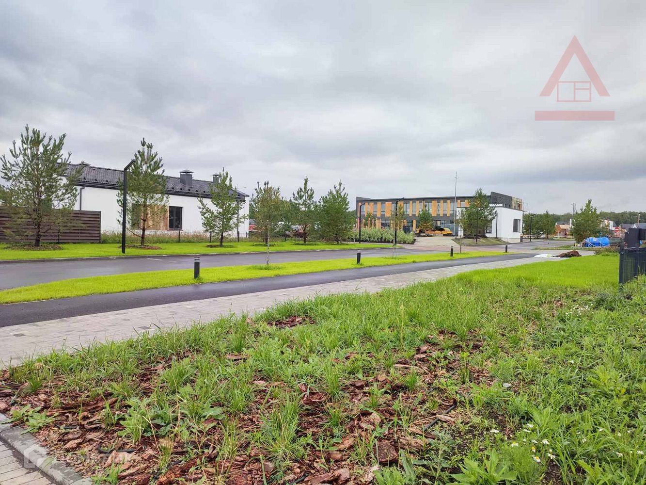 Участок огорожен, выравнен черноземом, выполнена дорожка к дому. Возле калитки есть 2 машиноместа. Покрытие - тротуарная плитка.