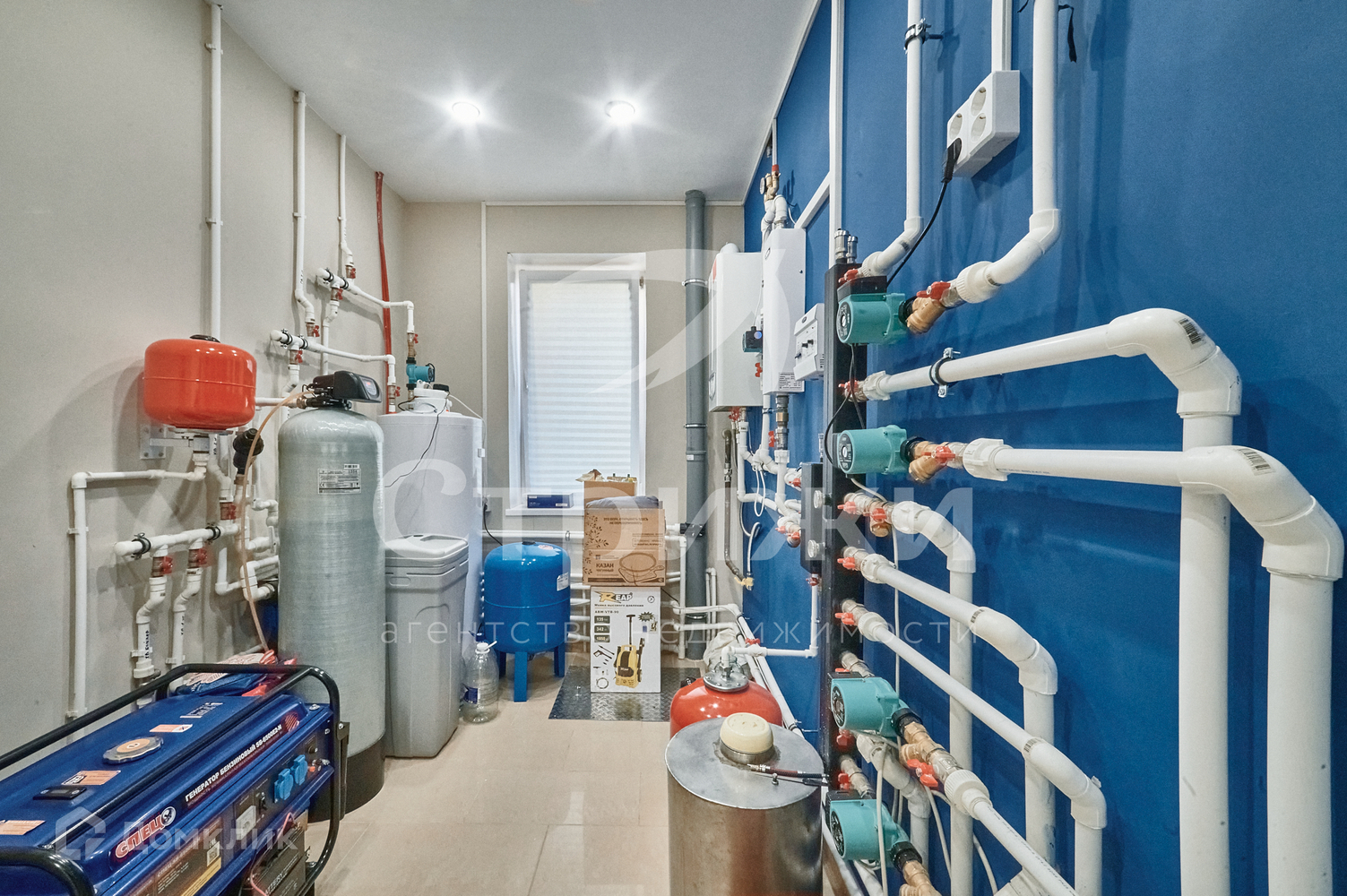 Коммуникации: скважина с чистой питьевой водой (установлена дорогая система ионообменной подготовки воды), септик, газовое отопление, электричество 15 кВт.