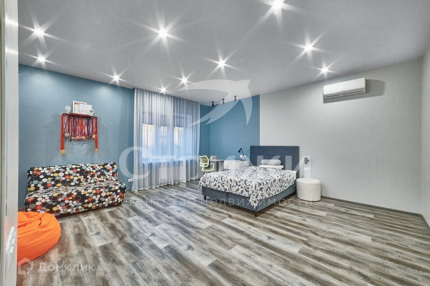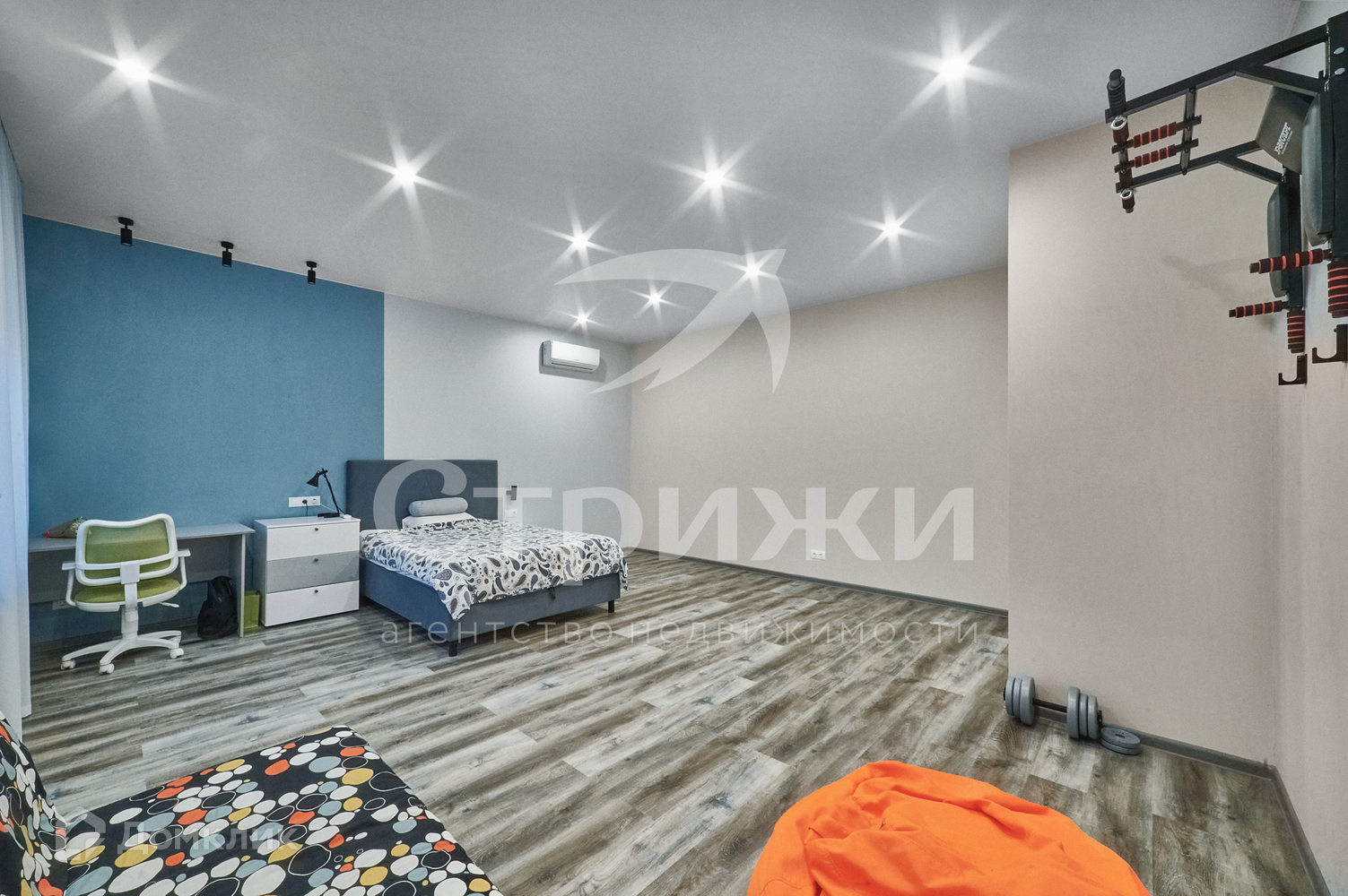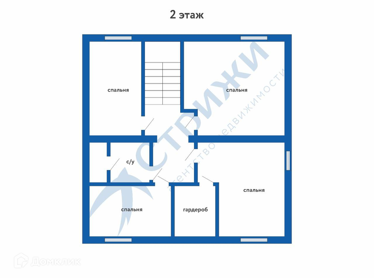 2 этаж: 3 спальни, одна из них с гардеробной, кабинет и санузел.
