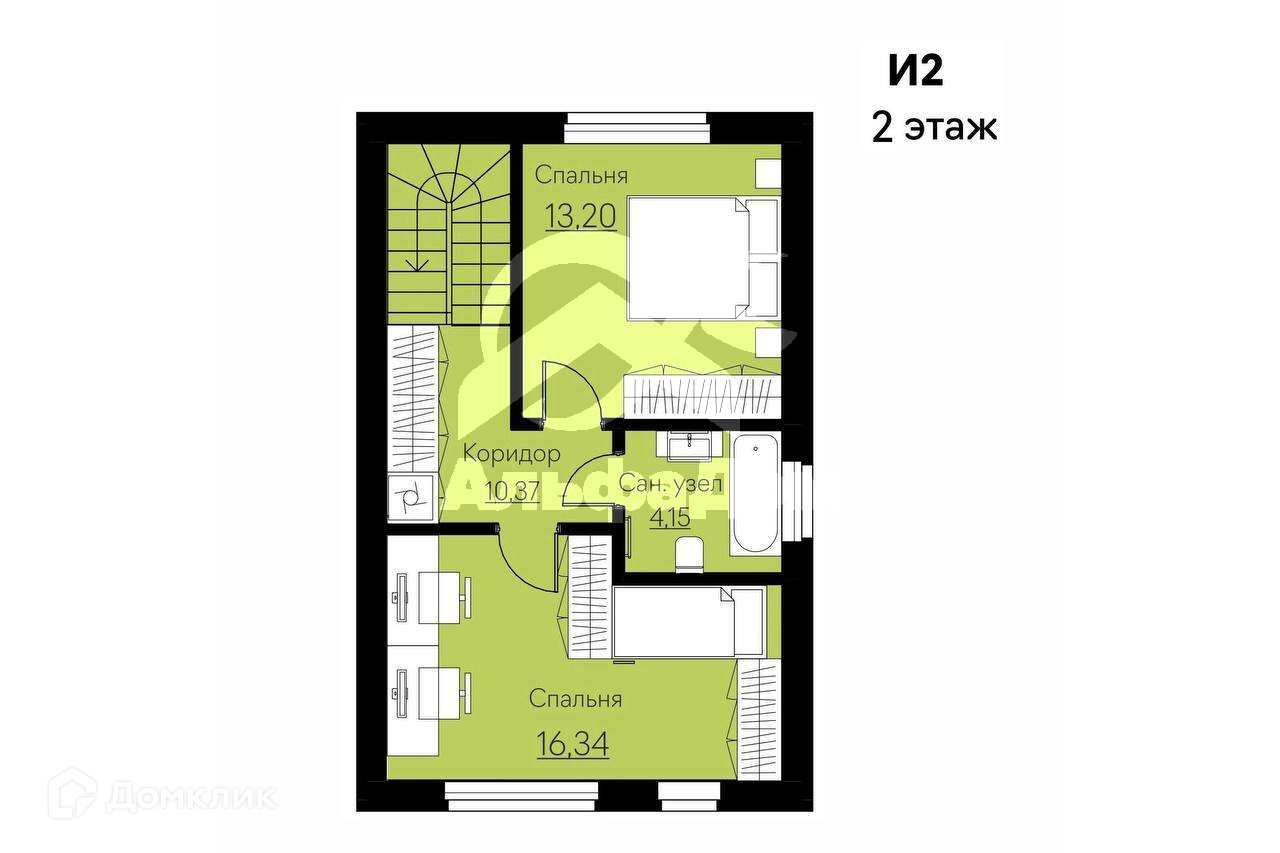 Две спальни - 13,20 м2 и 16,34 м2