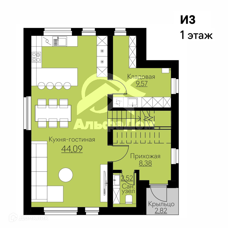 Гостиная с кухней - 44.09 м2;