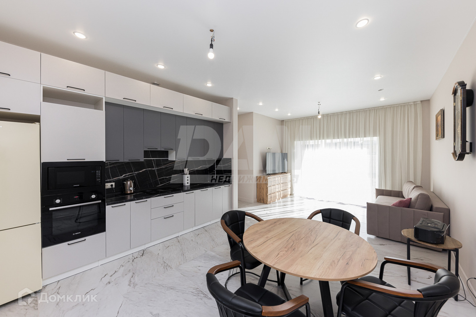Кухня гостиная 29,4 кв. м. с выходом на террасу, прекрасное место, где Вы можете провести время с друзьями или отдохнуть с семьей.