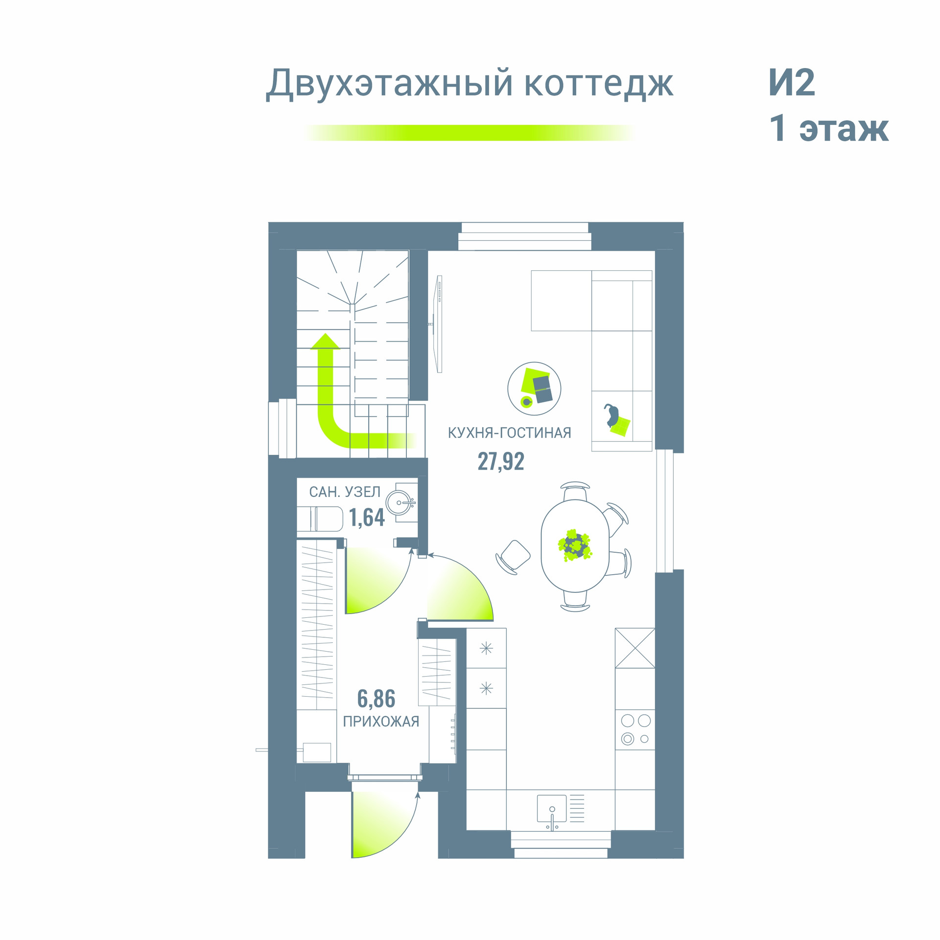 Гостиная с кухней - 27,92 м2;