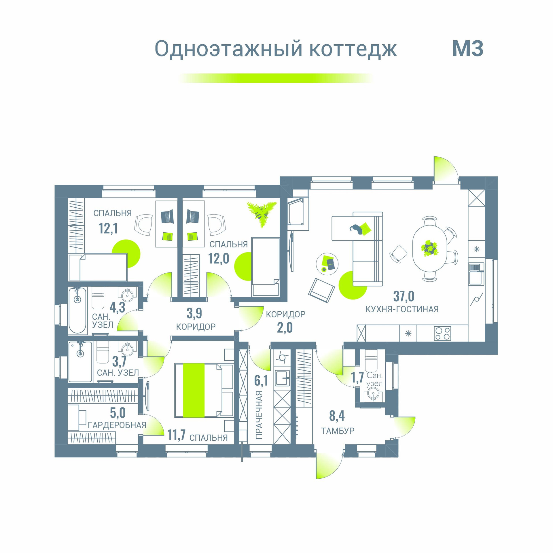 Гостиная с кухней - 37 м2;