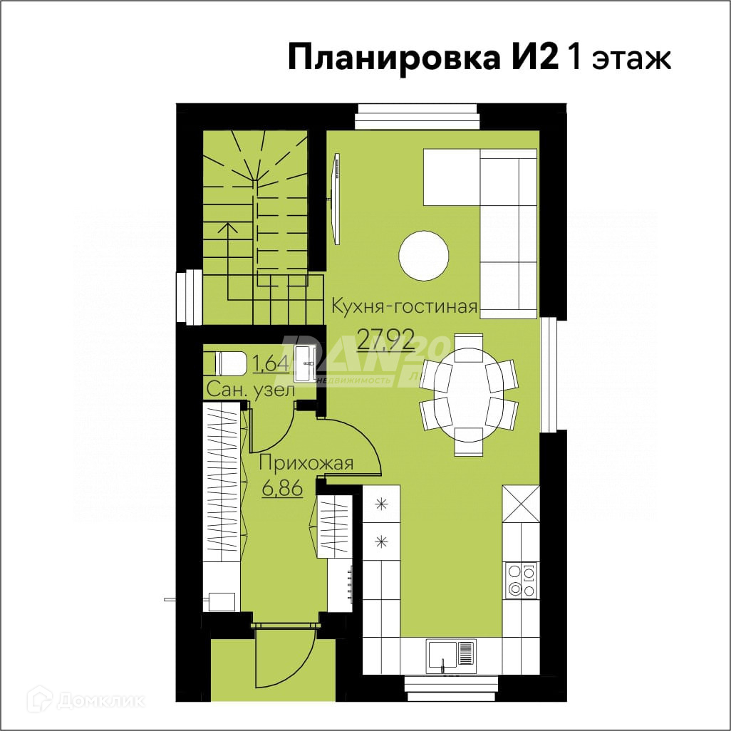 Продуманная планировка позволяет разместить большое количество мест для хранения внутри дома. По функционалу это студия и две спальни. Подобные планировки были очень востребованы в первой очереди поселка в виде таунхаусов. Теперь еще более удобное и эргономичное решение пространства сочетается с преимуществом индивидуального дома без соседей за стеной и большим (в сравнении с таунхаусом) участком земли (3,77 сотки). Здесь можно поставить дополнительные строения: беседку, гараж или баню.