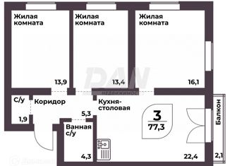 3-комнатная квартира на продажу, 77.3 м2, улица Ломоносова, 22