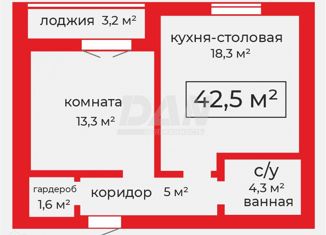 Общая площадь: 42.5 м2