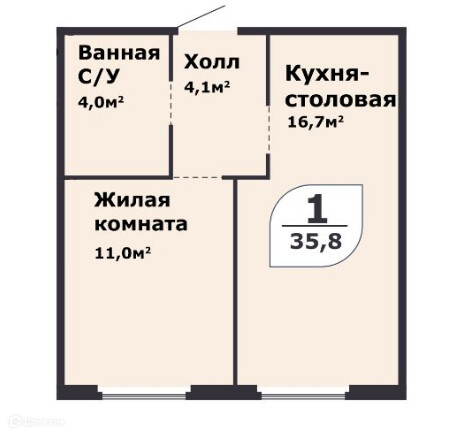 Общая площадь 35.8 м2