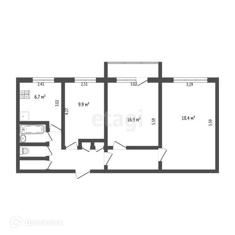 Общая площадь 57 м2