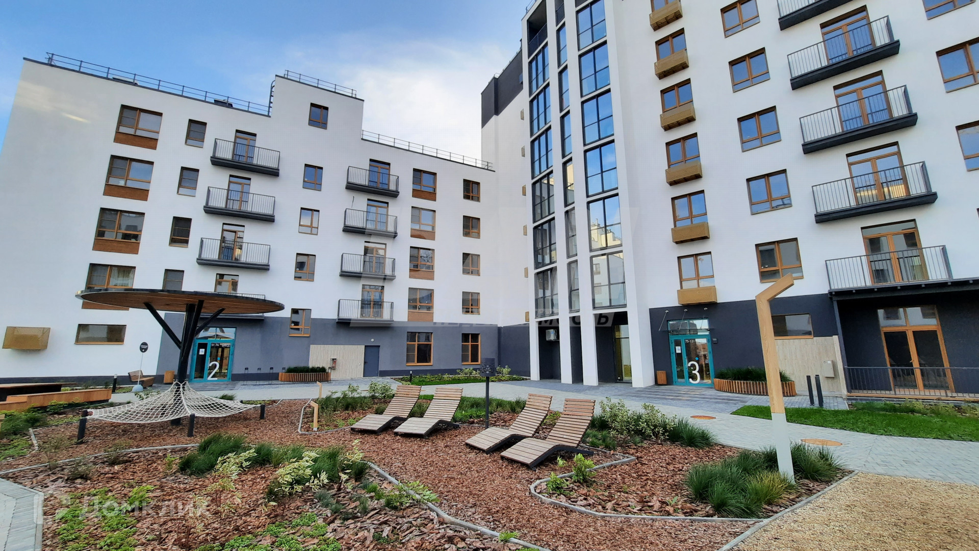 Современная архитектура домов, разноэтажные секции, уникальные дворы с ландшафтным озеленением,  пешеходный бульвар, система доступа на территорию двора, видеонаблюдение, современные холлы, скоростные лифты, окна с заниженной подоконной зоной.