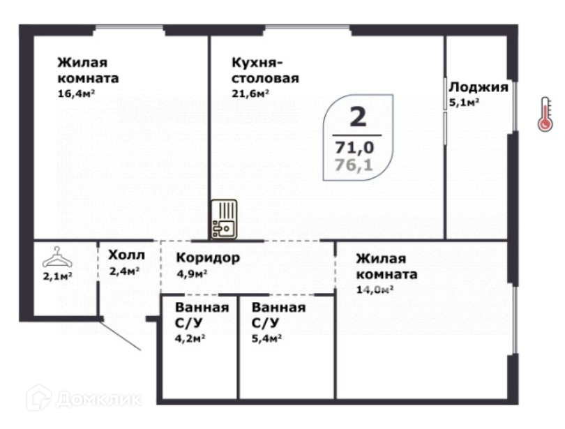 Общая площадь 76 м2