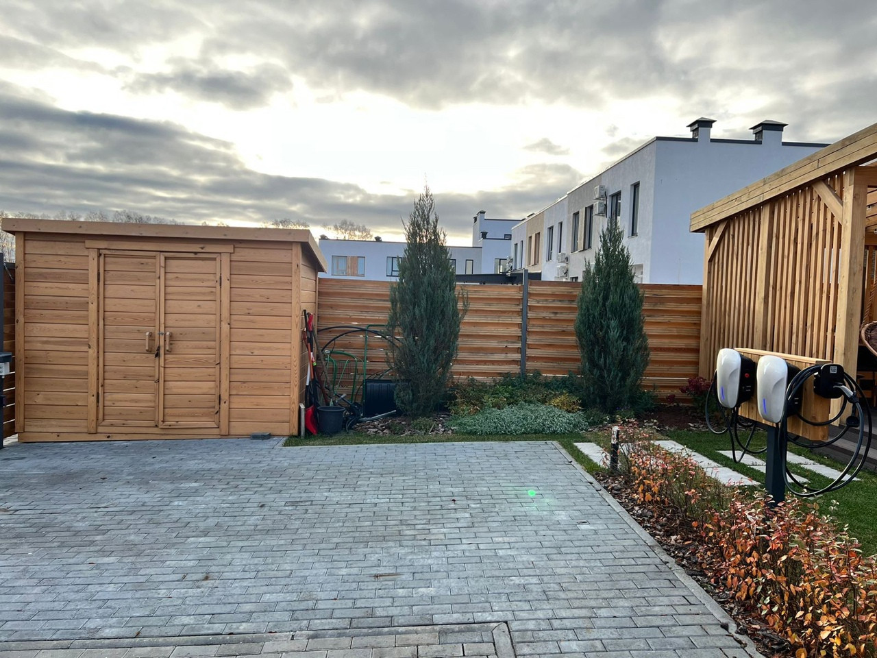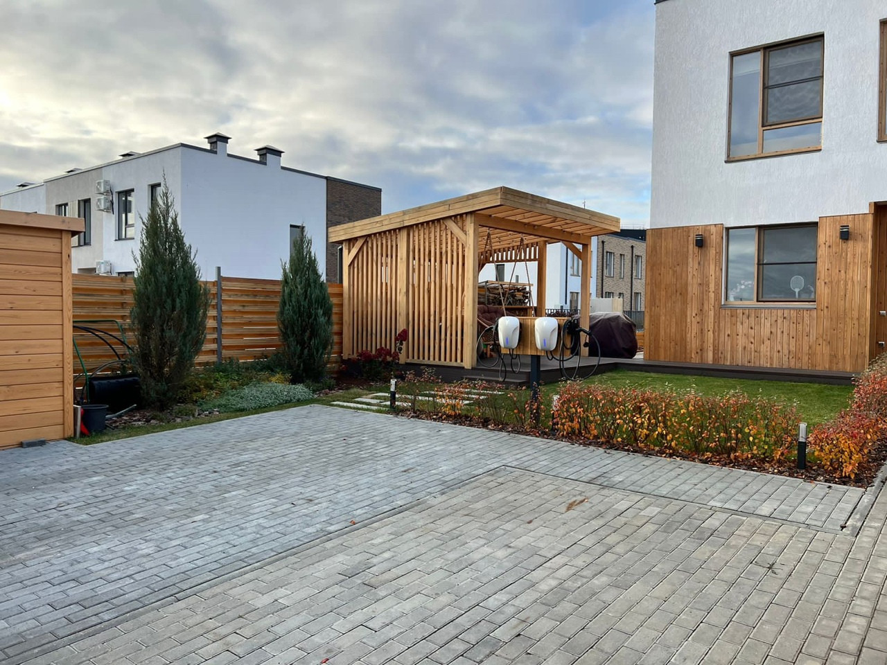 Выведены провода (дополнительно оформлены 15кВт мощность) для установки зарядной станции для электромобилей.