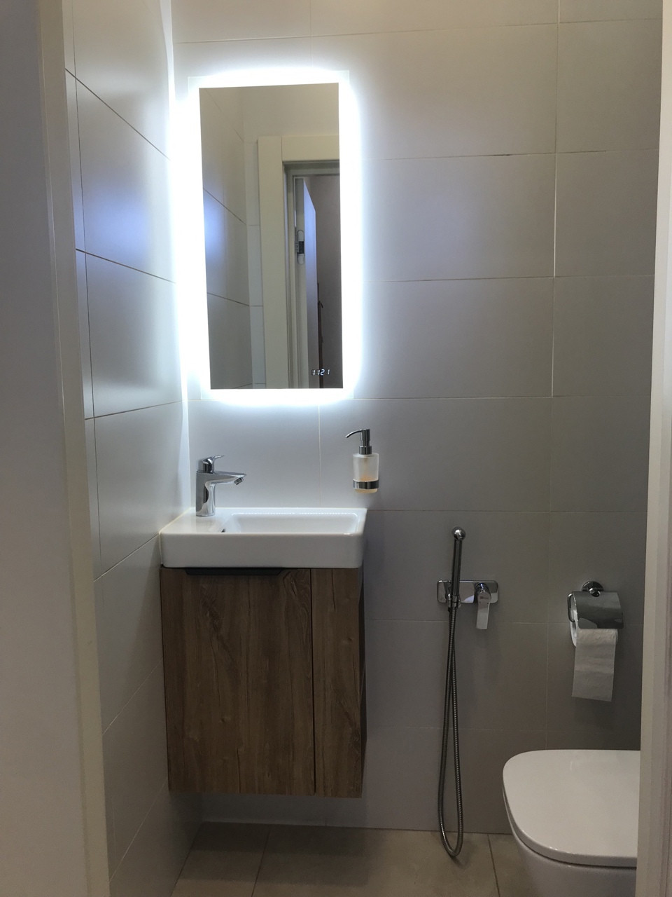 В санузлах пол и стены КЕРАМОГРАНИТ