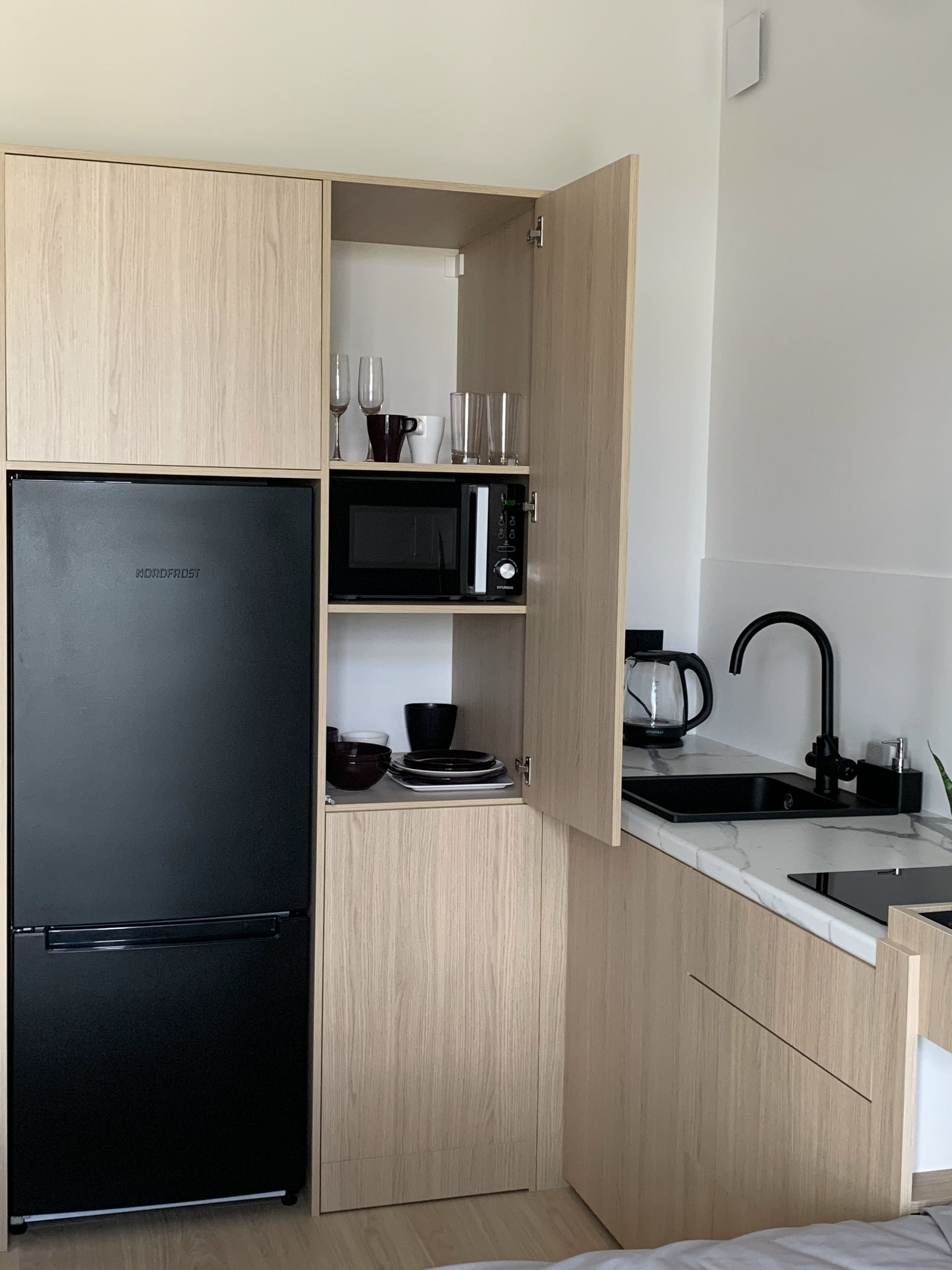 - бытовая техника (кондиционер, холодильник, индукционная плита, микроволновая печь, чайник, стиральная машина)