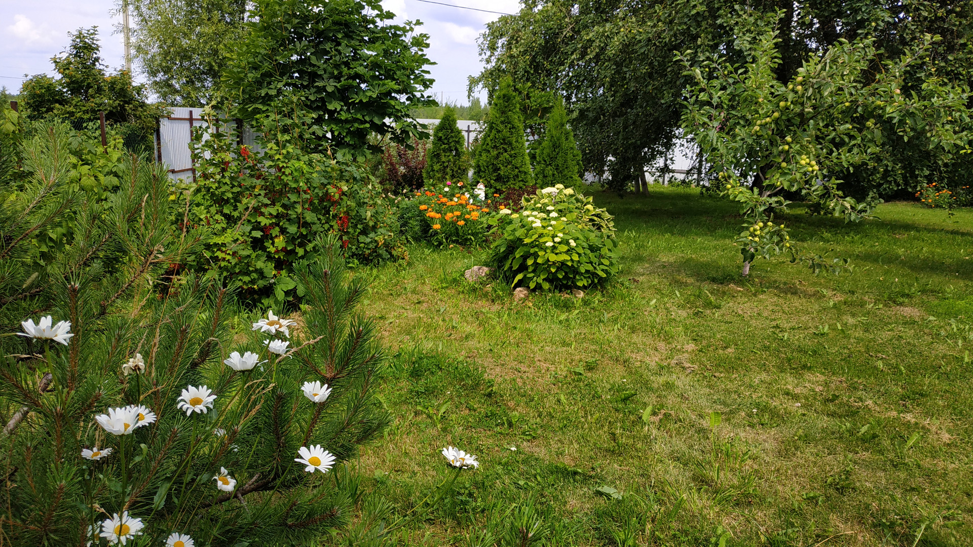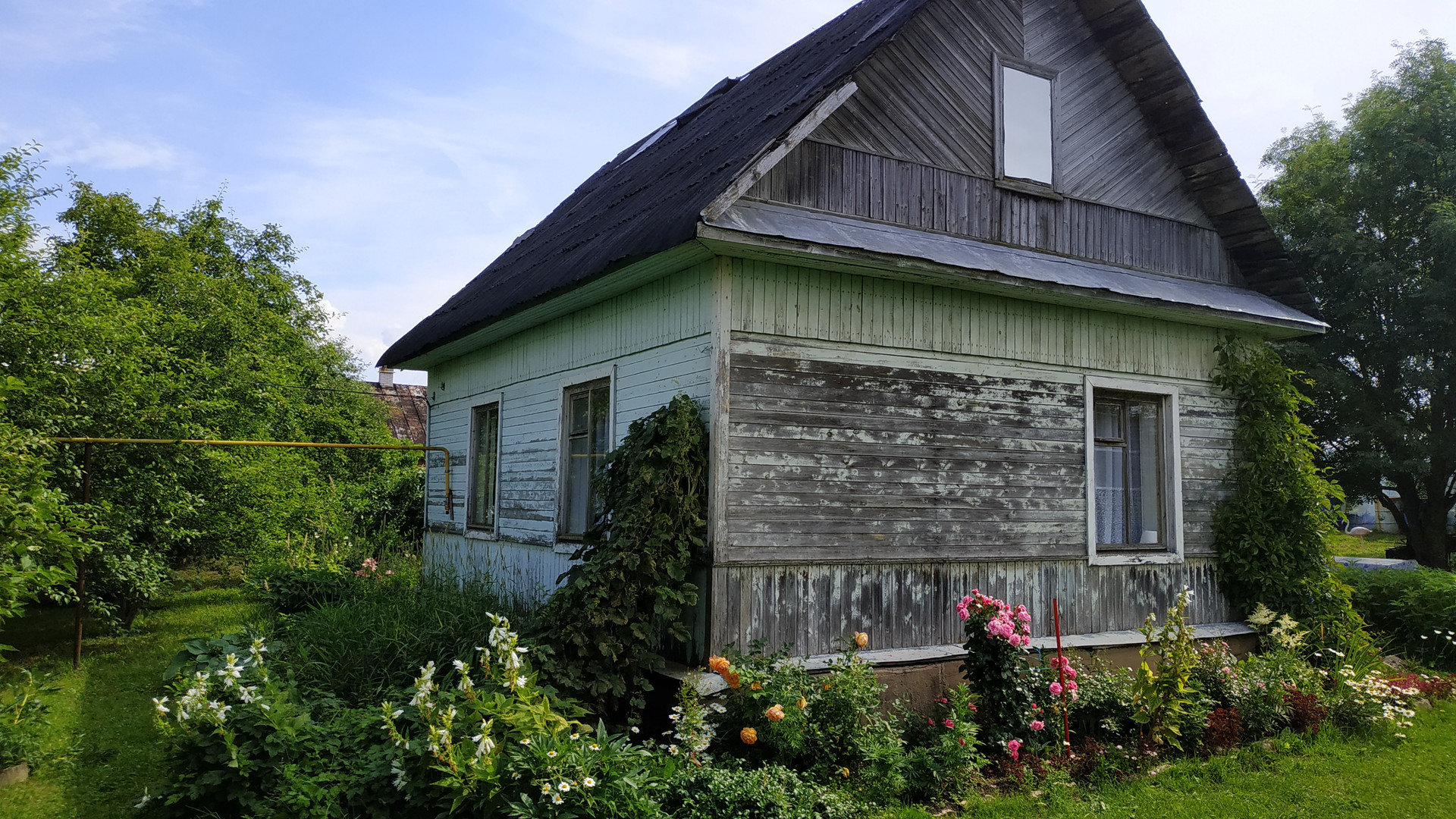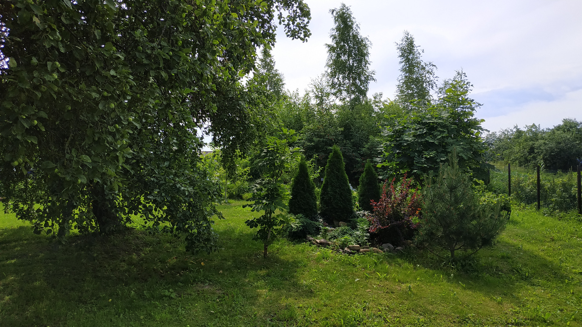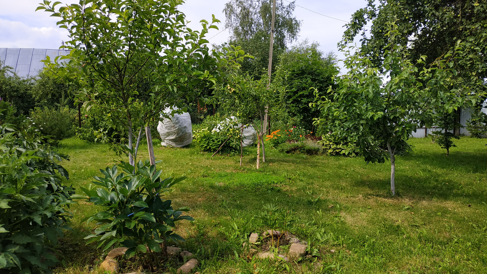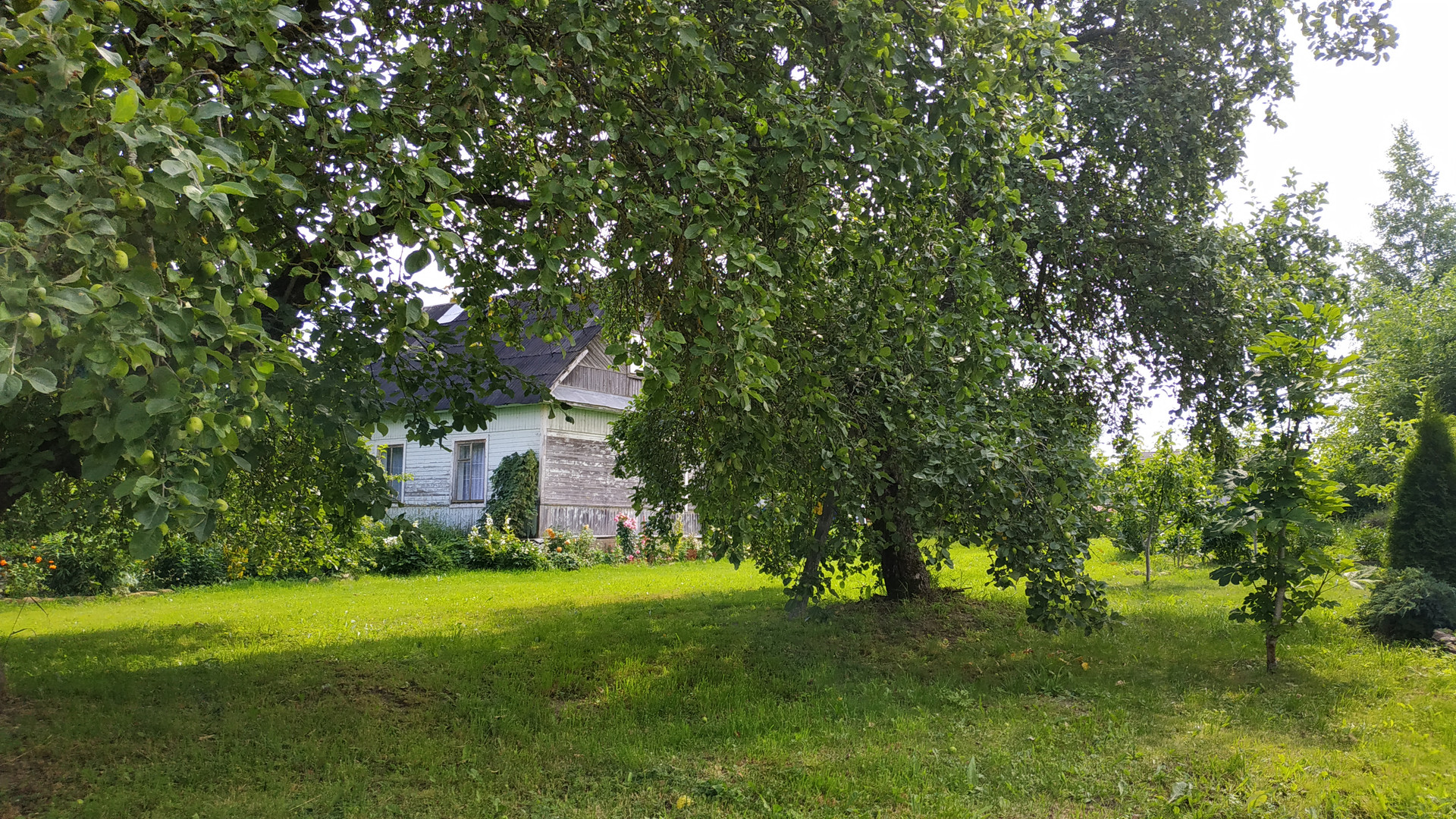 Участок просторный, почти правильной формы. Возможно полное или частичное освоение- огород, хозпостройки для животных или для других нужд. На территории растут плодоносящие яблони, овощи, цветы.
