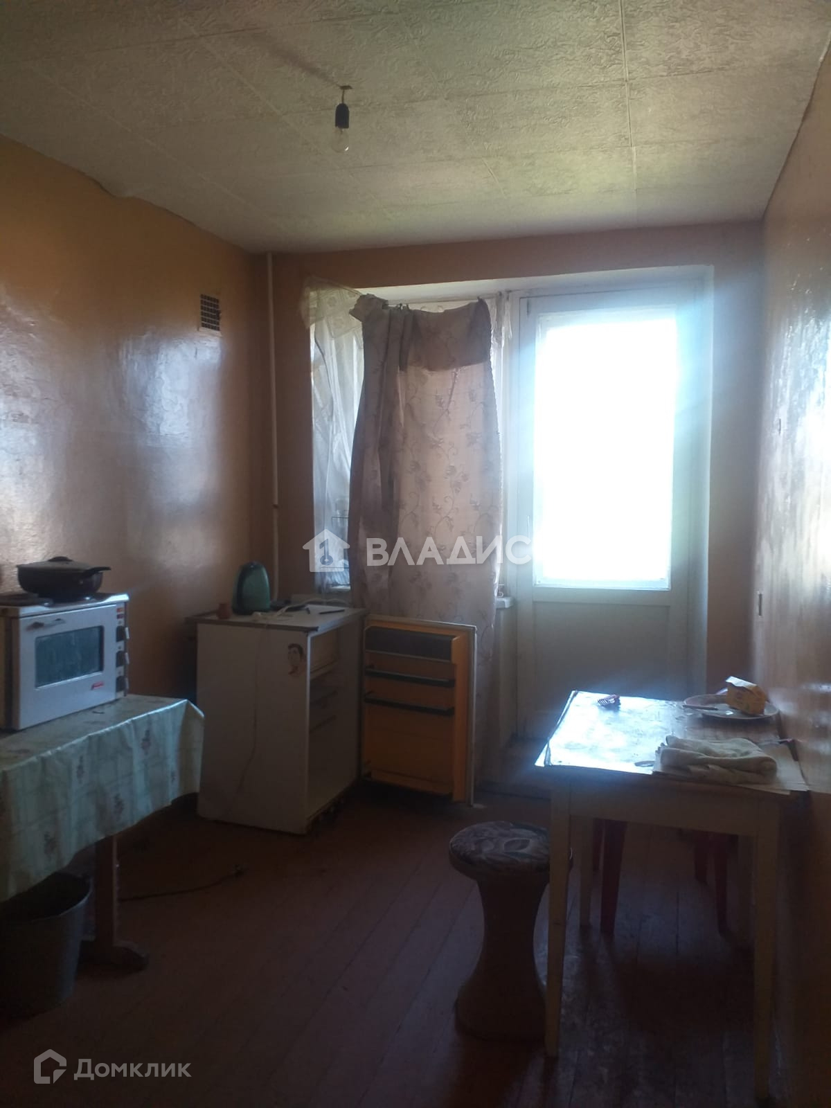 Полы и окна деревянные. Лоджия с выходом из двух комнат (из кухни и спальни).