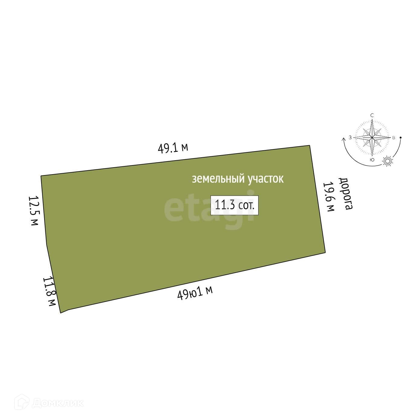 Площадь участка 11.3 сот.