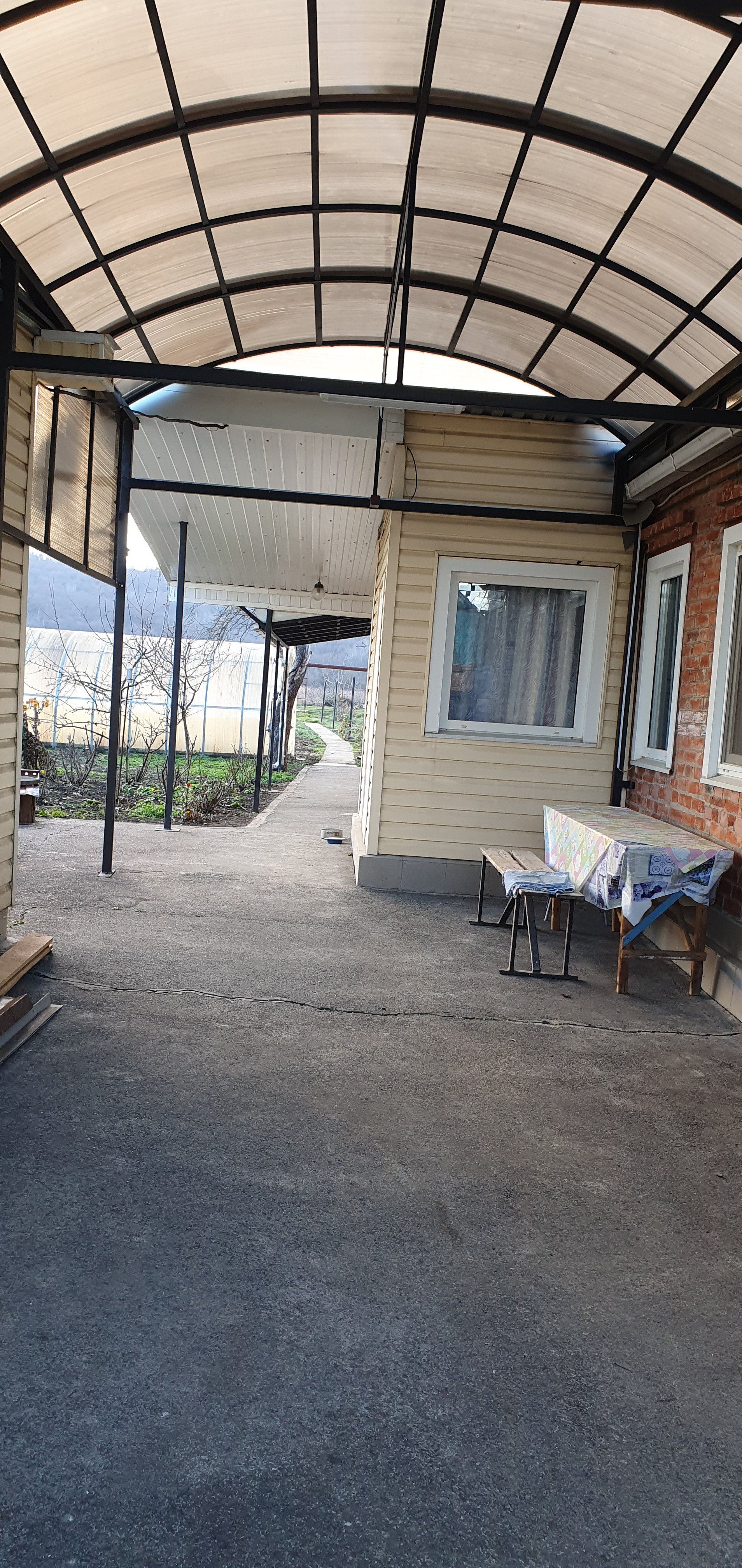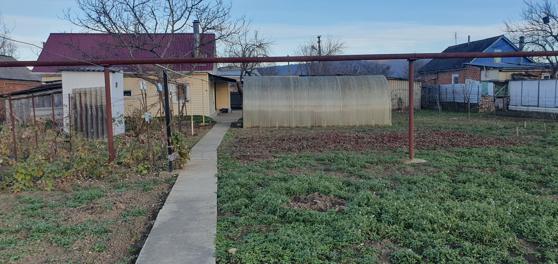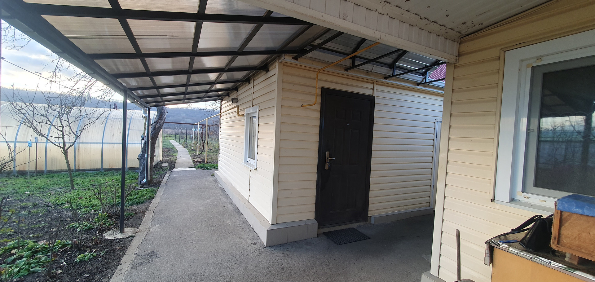 Дом саманный,обложенный кирпичем везде установлены евроокна,доп.пристройка из шлакоблока,обложенная кирпичем и обшитая сайдиногом,в доме водяное отопление,полы застелены ламинатом,в доме расположен санузел. Крыша покрыта профгастилом. Кухня стоит отдельно,в которой  находится газовый котёл отопления,ванная комната с душевой и печкой для сауны. Кроме водопровода,во дворе есть колодец с питьевой водой,который в летний период используется для полива огорода с помощью электронасоса. На территории расположены гараж из кирпича,хоз.постройки,теплица, дачный туалет. На участке площадью 13 соток высажены плодовые деревья и ягодные  кустарники,имеются клубничные грядки. Двор заасфальтирован и облагорожен цветниками. Большая часть двора защищена навесом из поликарбоната.