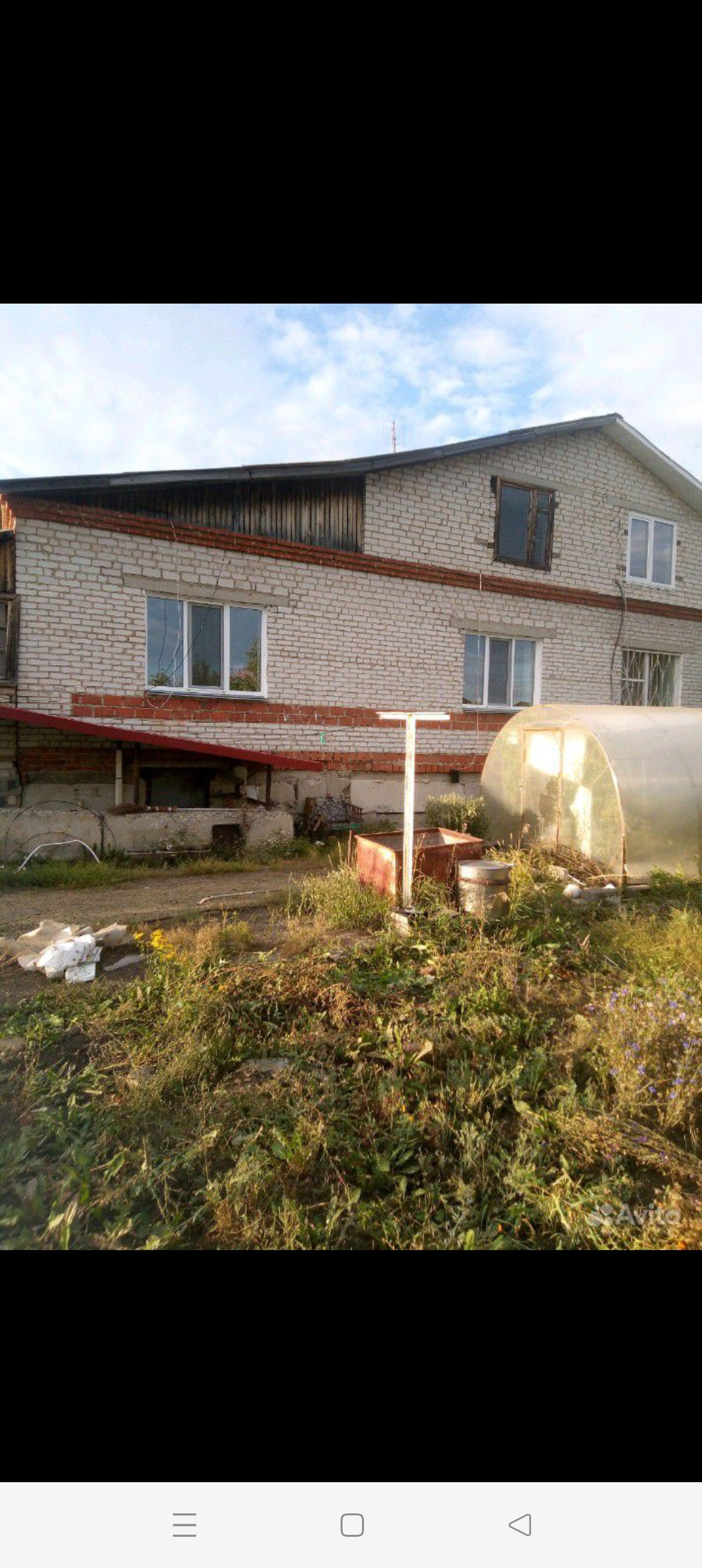 1/2дома, газовое отопление (индивидуальное), центральные водопровод и канализация, жилая площадь 100м2- прихожая, холл,раздельный с/у,большая кухня-столовая, 3 раздельные комнаты.Цокольный этаж(подвал)=100м2-гараж,овощехранилище, хозкомнаты. Есть выход из дома под кровлю- для устройства мансардного этажа (при необходимости). Веранда кирпичная, на участке хоз.блок капитальный из ж/б блоков, теплица, садовые деревья.