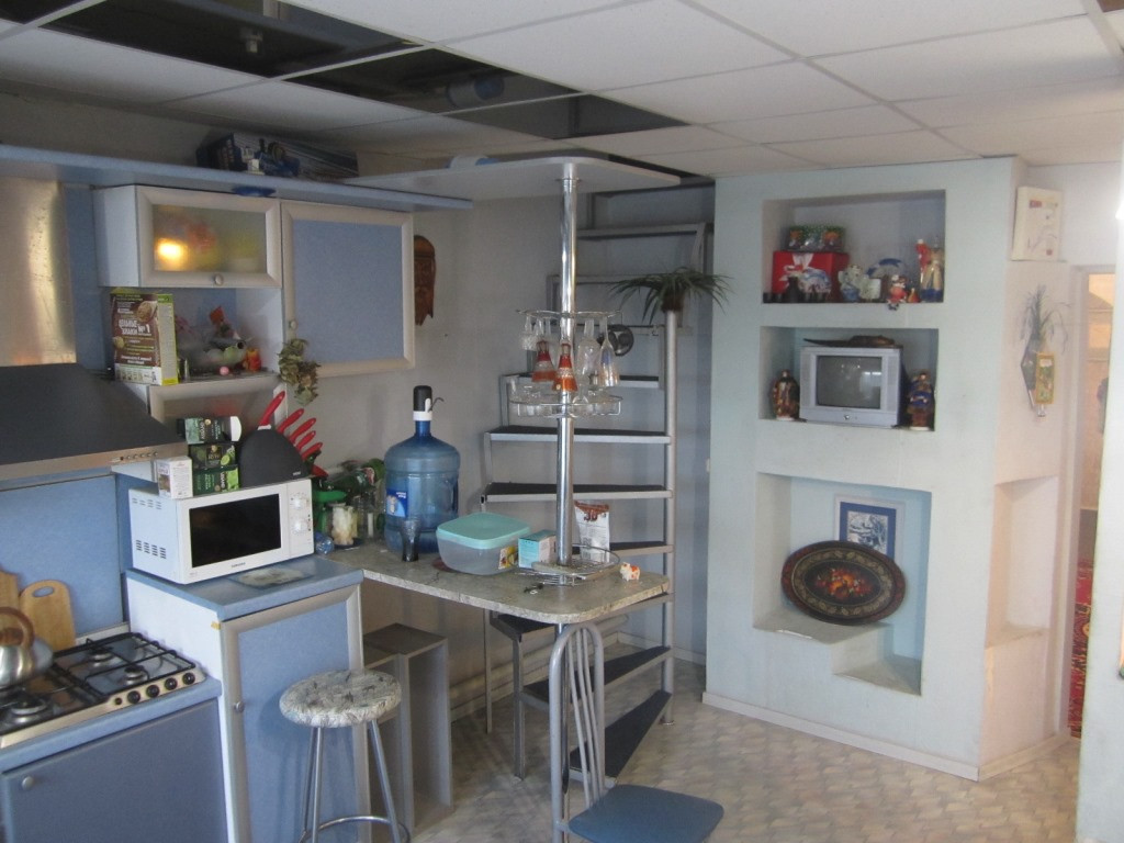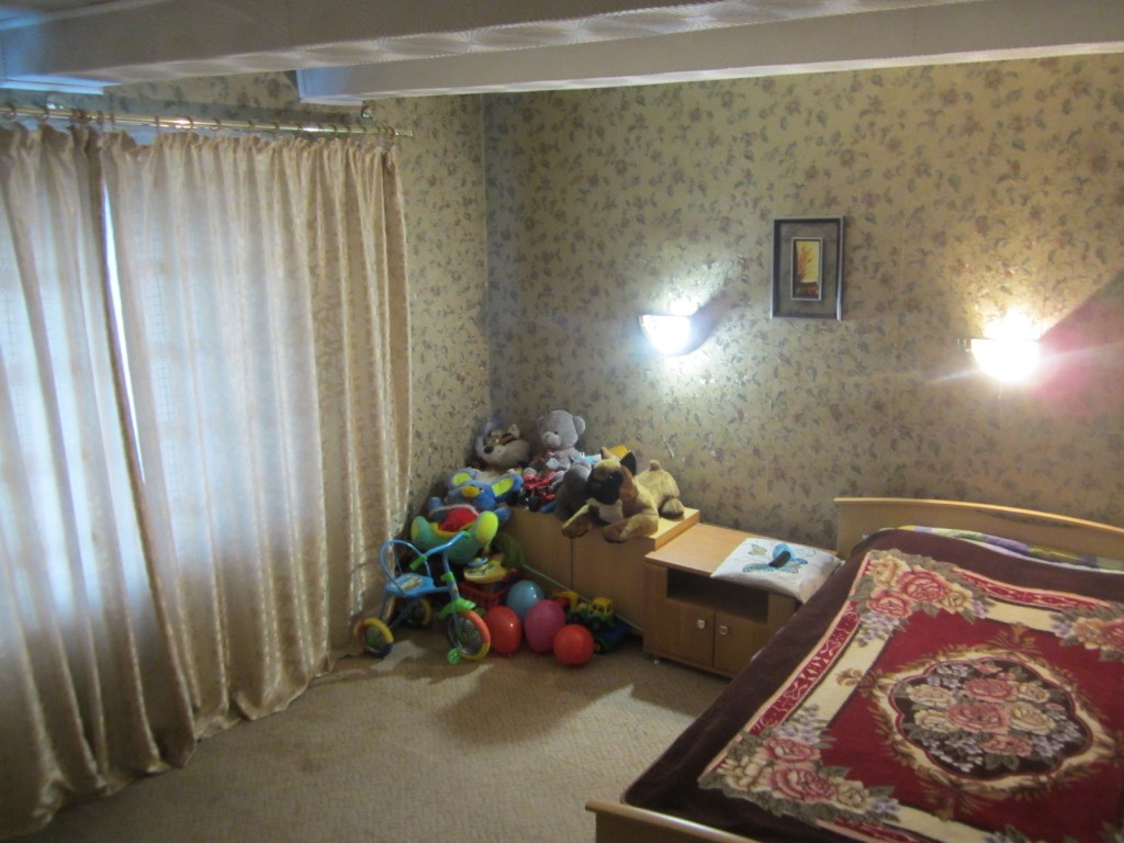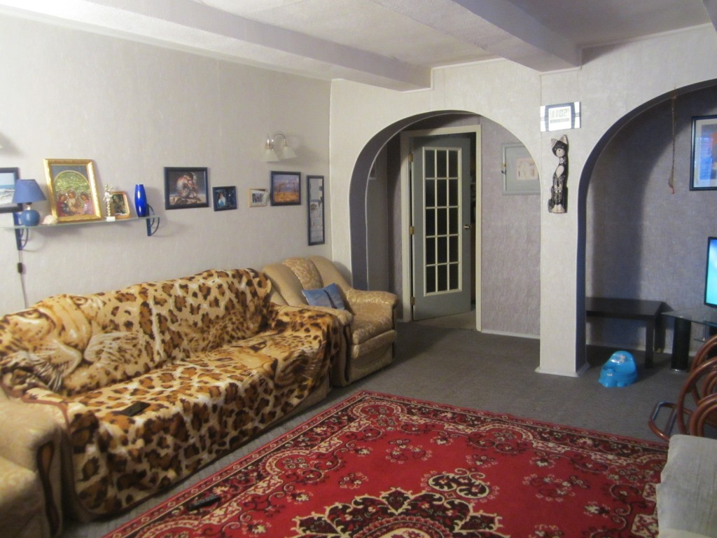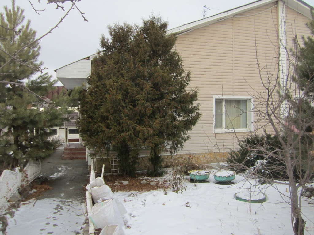 Продается полдома, по документам - трехкомнатная квартира, 97,4 кв.м.. Стены кирпич, обшиты сайдингом, центральная подача газа, воды и электроэнергии, сливная яма. Квартира расположена на земельном участке 7 соток и 10 соток.  На участке есть теплица, зона барбекю, гараж, сарай, баня, беседка. До города от поселка 45 км. В квартире просторная веранда, холл, есть погреб, санузел совмещен. Кухня, гостиная и спальня расположены на 1 этаже, и спальня с балконом на 2 этаже. Подойдет как для постоянного проживания, так и для дачи.