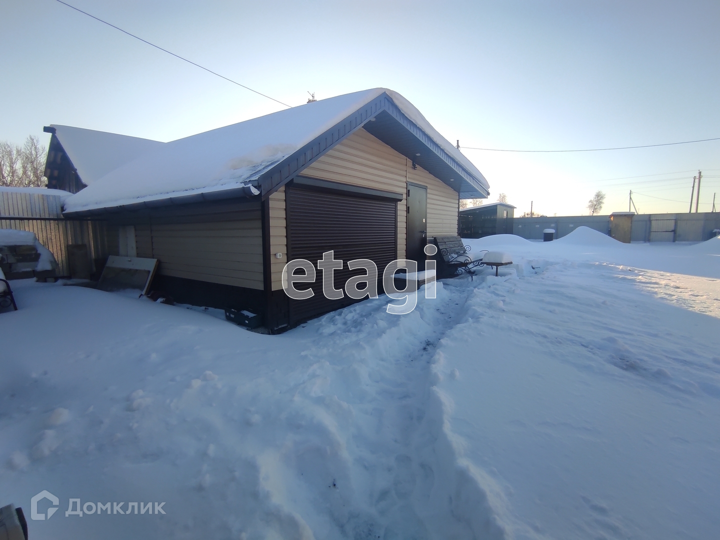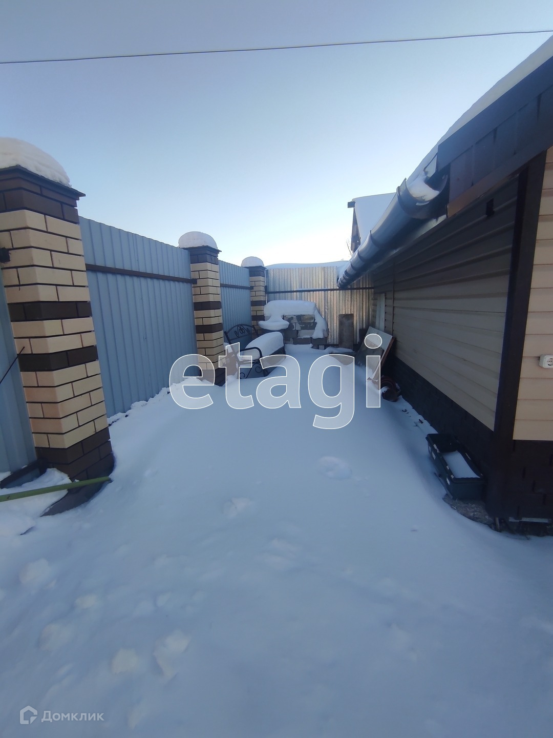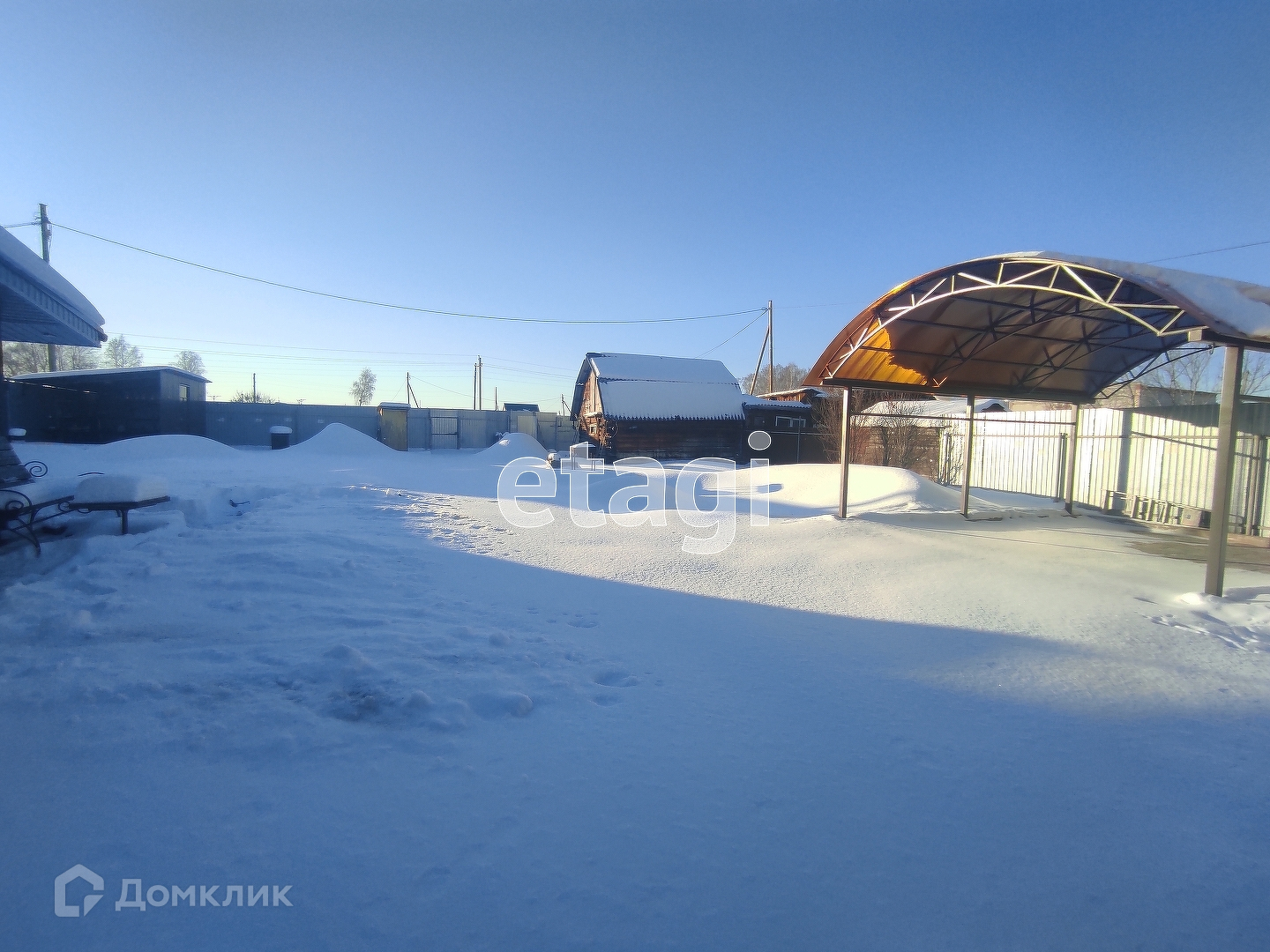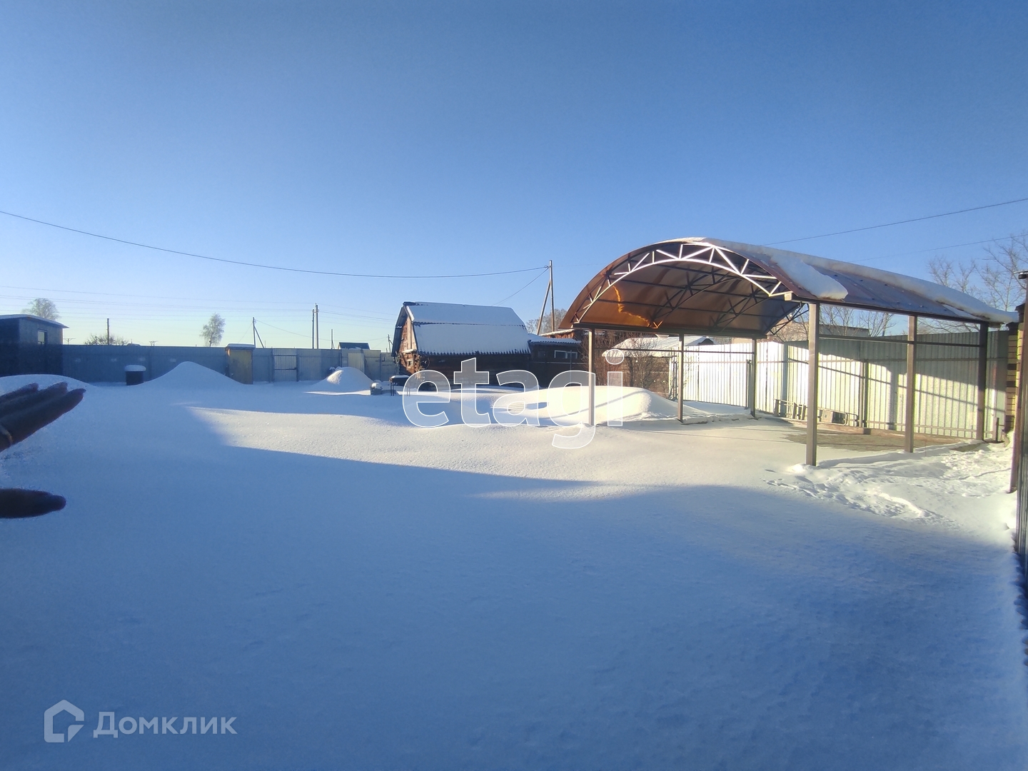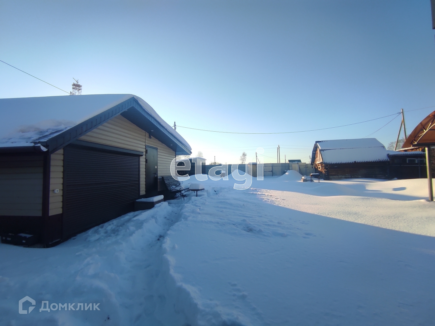 Участок обработан и поделен на зоны. К дому пристроен гараж 12 м2, так же есть забетонированная зона с настилом для стоянки машины. По углам участка расположены хозяйственные постройки: сарайка, место для хранения инвентаря, летняя кухня с мангалом. Так же залили фундамент под баню, сделали септик и провели воду. Санузел на улице, но септик соединен едиными коммуникациями дом-баня-туалет. Участок огорожен капитальным забором из профнастила, а входная зона выложена кирпичом.