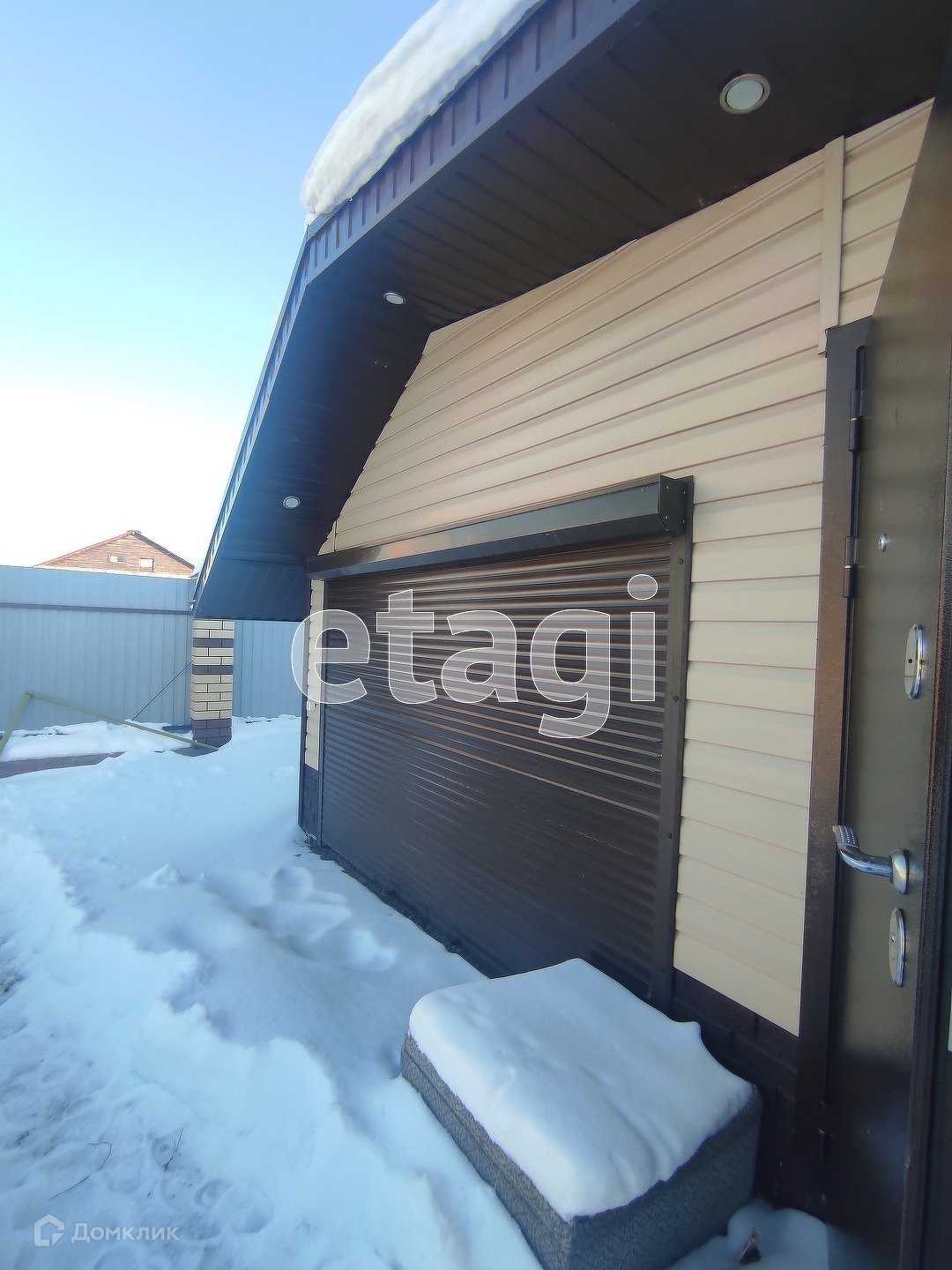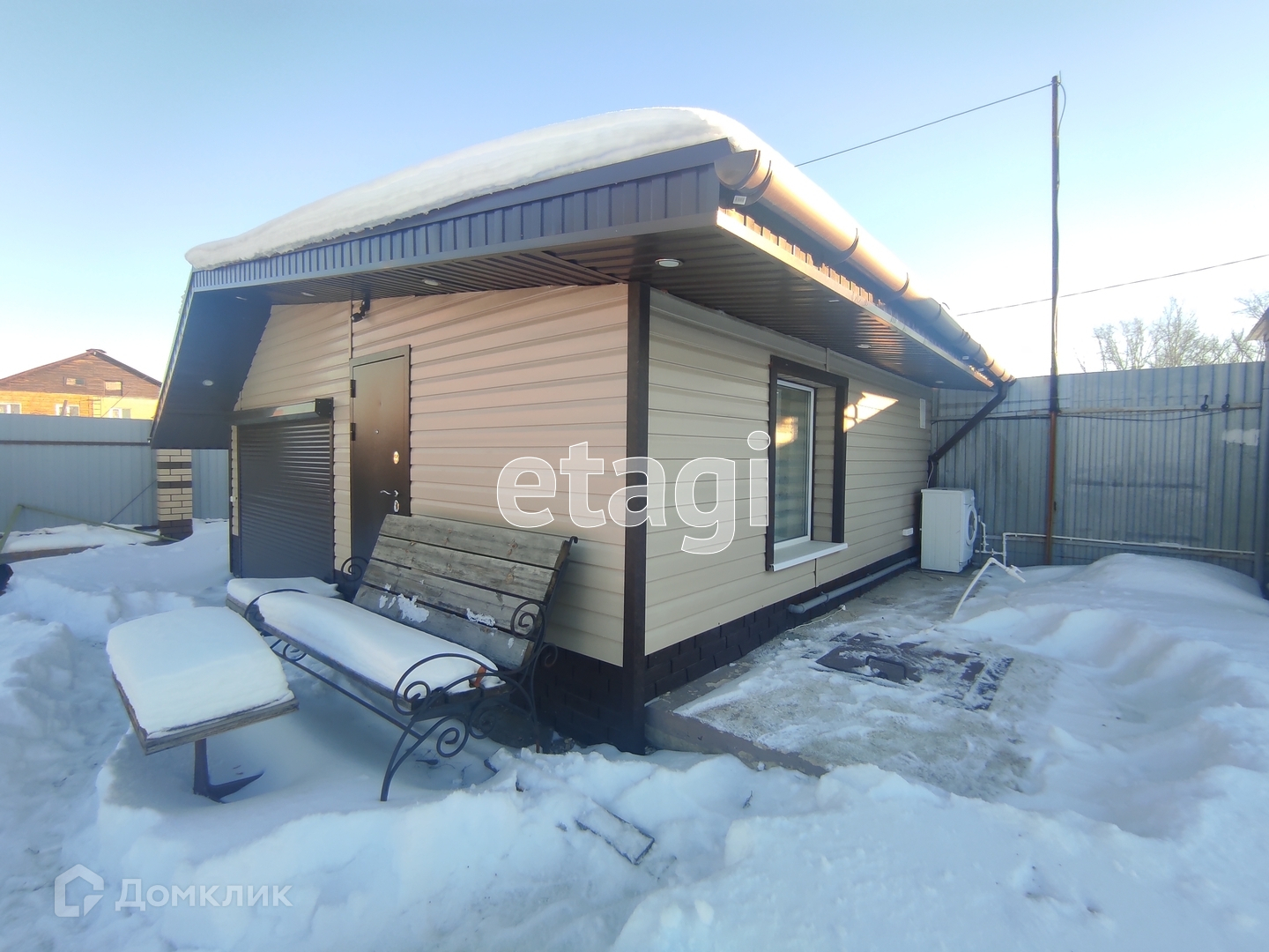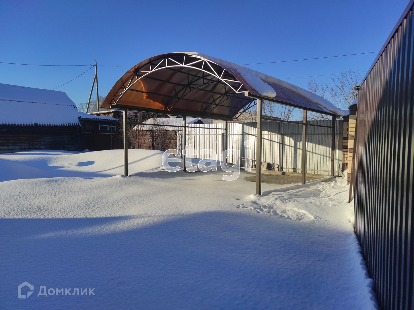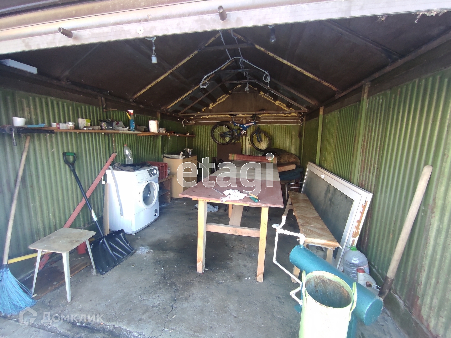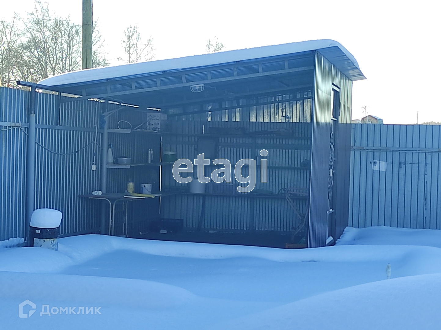 Участок обработан и поделен на зоны. К дому пристроен гараж 12 м2, так же есть забетонированная зона с настилом для стоянки машины. По углам участка расположены хозяйственные постройки: сарайка, место для хранения инвентаря, летняя кухня с мангалом. Так же залили фундамент под баню, сделали септик и провели воду. Санузел на улице, но септик соединен едиными коммуникациями дом-баня-туалет. Участок огорожен капитальным забором из профнастила, а входная зона выложена кирпичом.