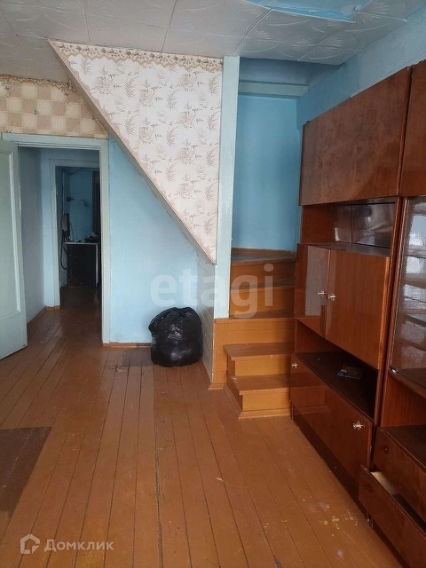 Квартира двухэтажная, на первом этаже кухня, гостиная, санузел, на втором этаже две спальни и гардеробная. Везде сделан косметический ремонт, можно заехать и жить. Отопление в доме централизованное. Вода заведена в квартиру. На участке имеются хоз. постройки, баня, сарайки. Во дворе есть место под парковку автомобиля.