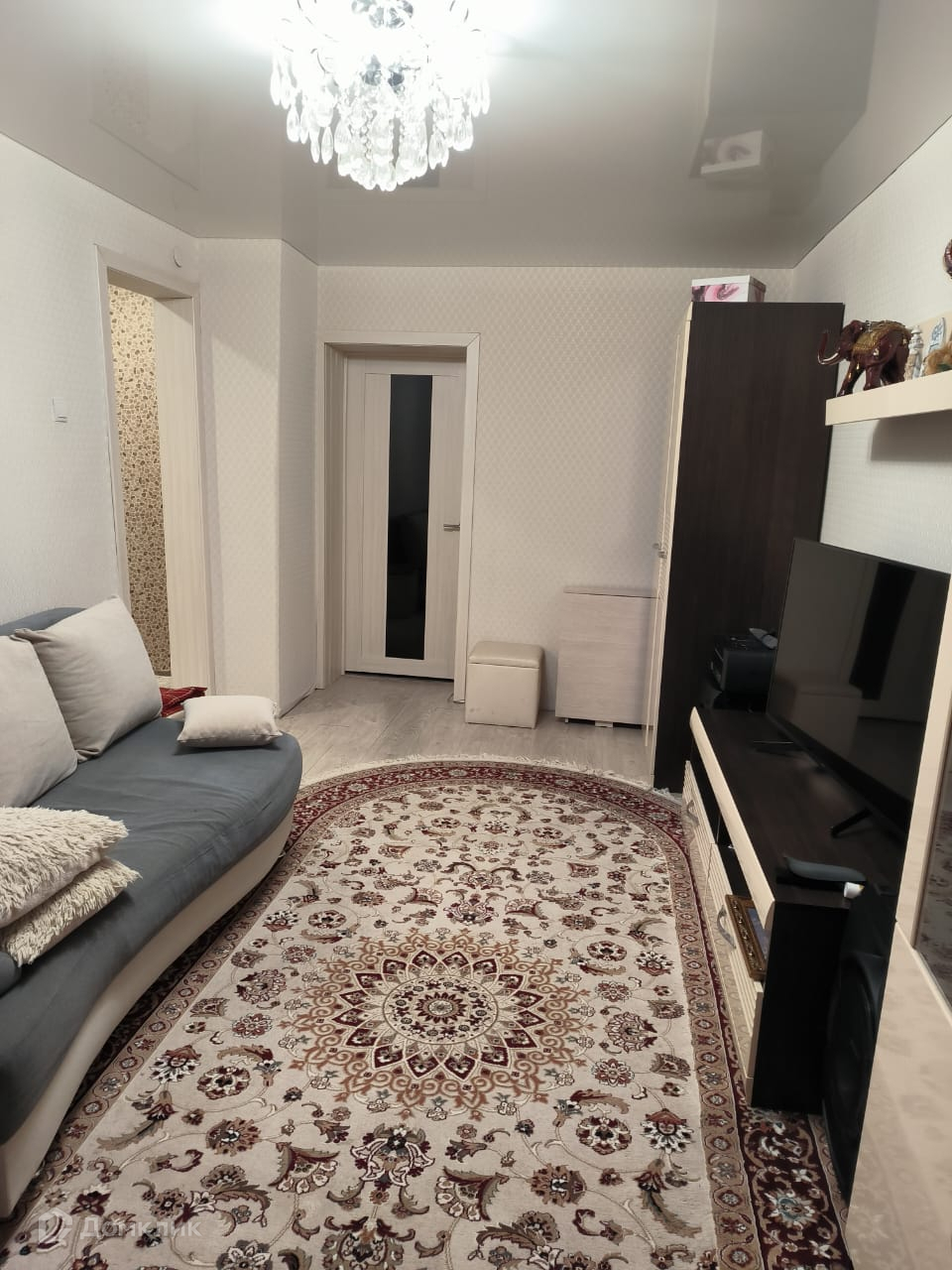 Натяжной потолок, на полу ламинат, санузел раздельный в пластиковых панелях, окна евро, новые межкомнатные двери, имеется газовая колонка, а значит горячая вода круглый год, установлены счетчики на воду.