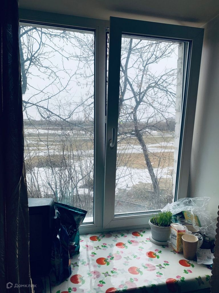 - Перед окном растут яблони, красивый вид.
