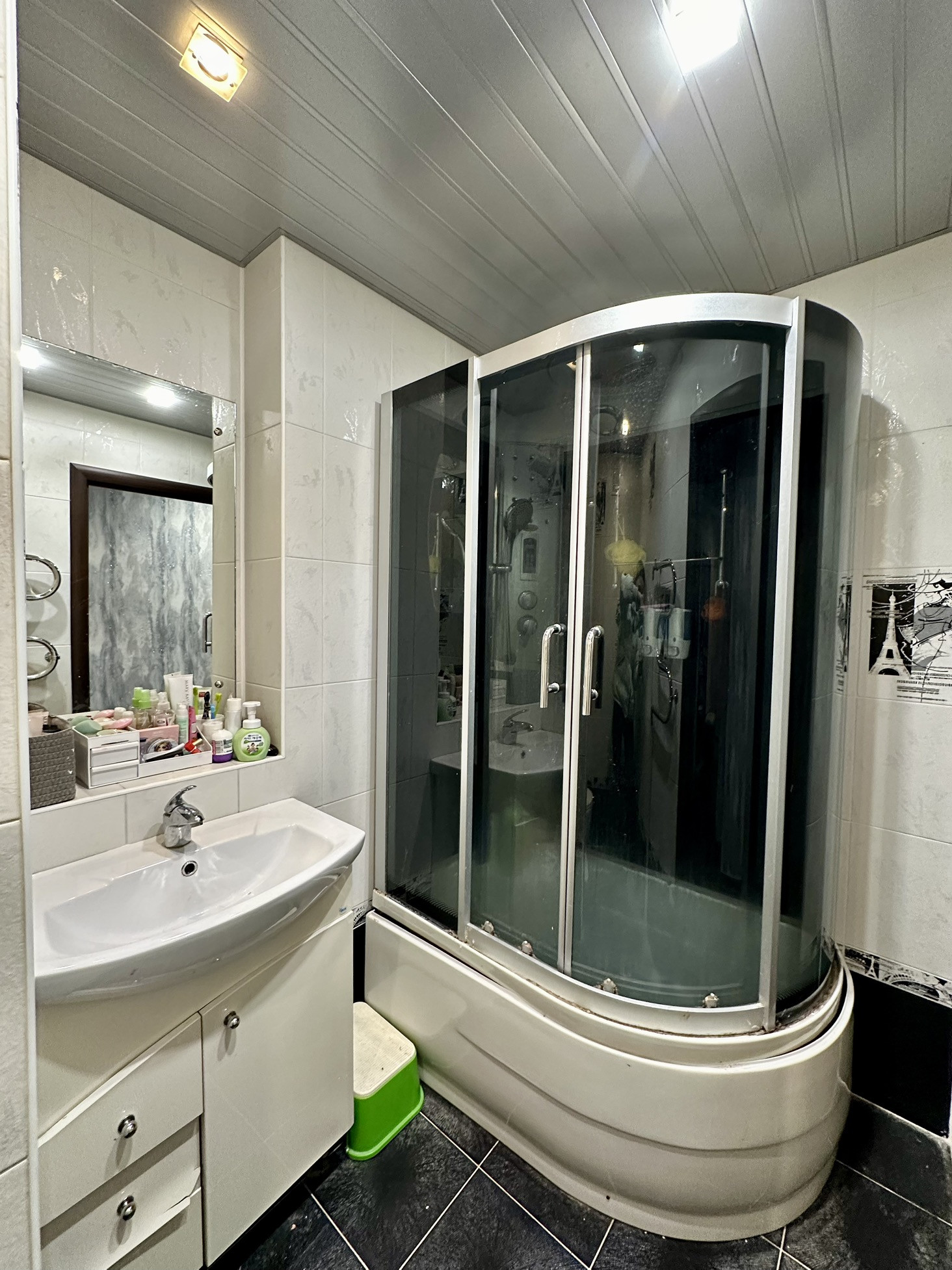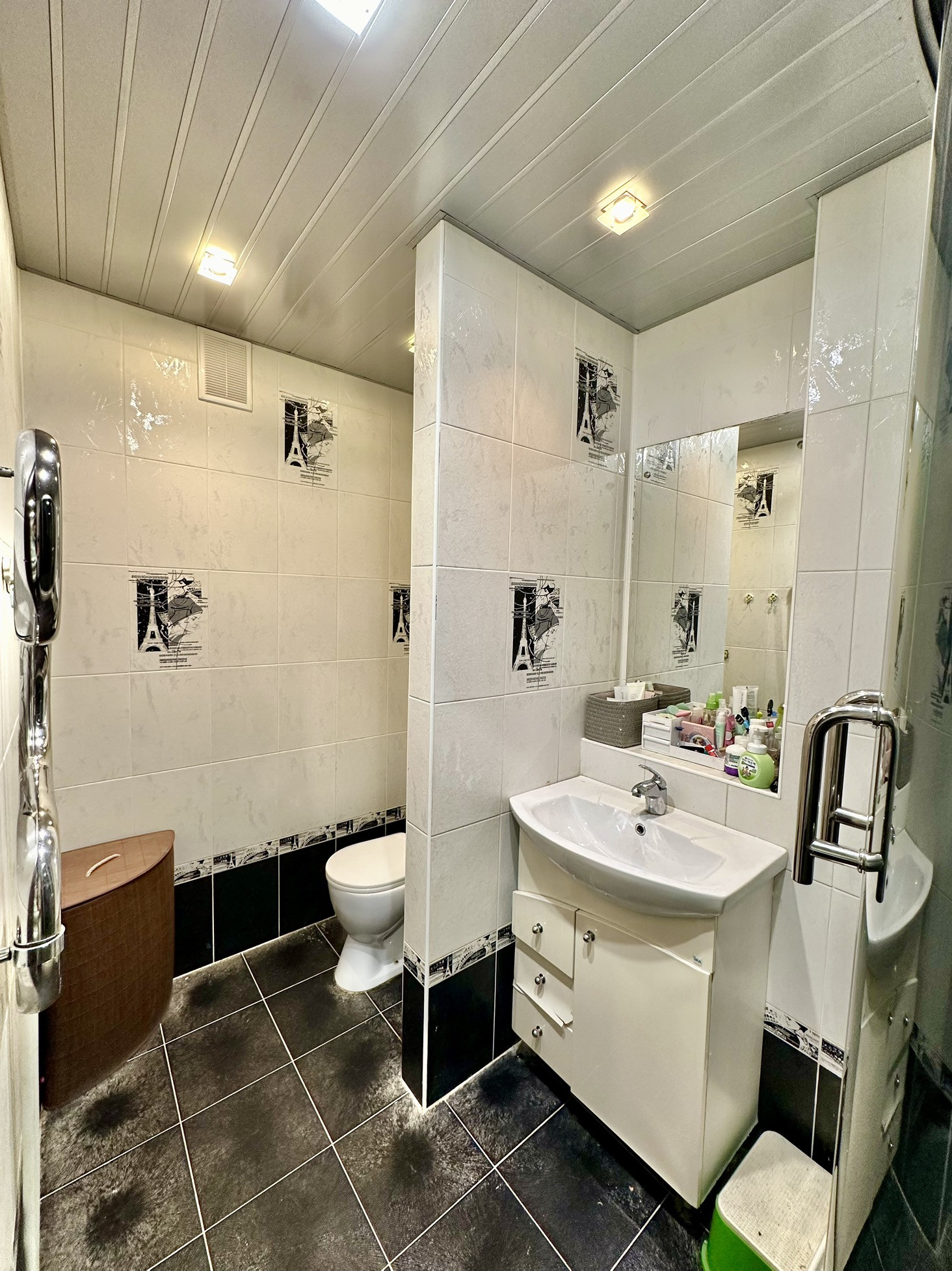 Ванная и туалет совмещены, отделка кафель. трубы п/п. + индивидуальные приборы учета.