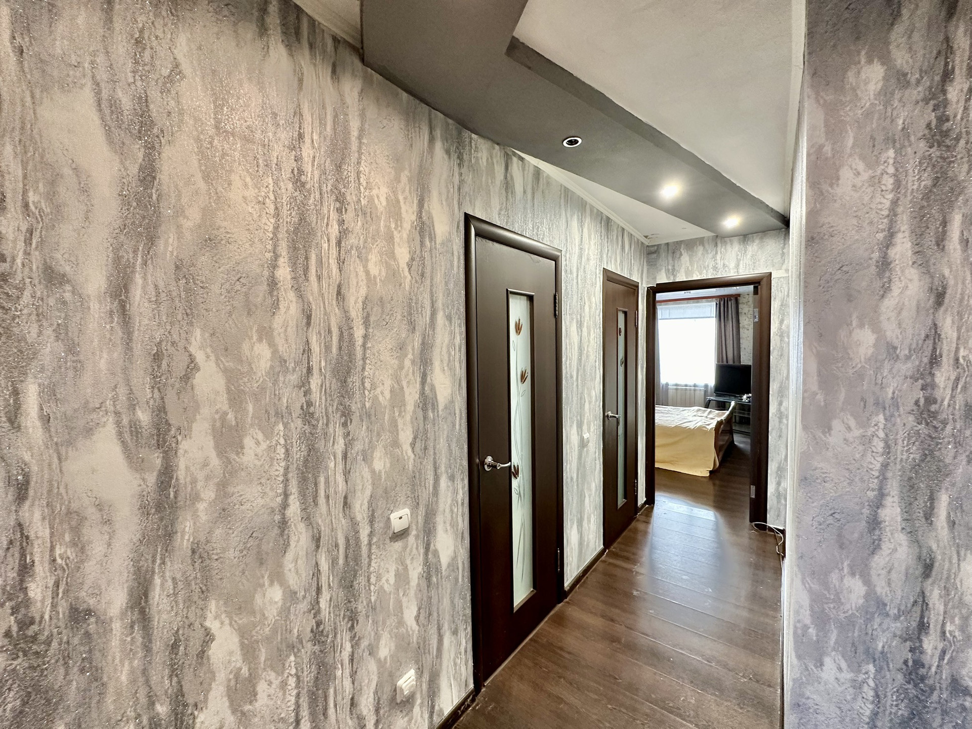 Стены выровнены, оклеены обоями.