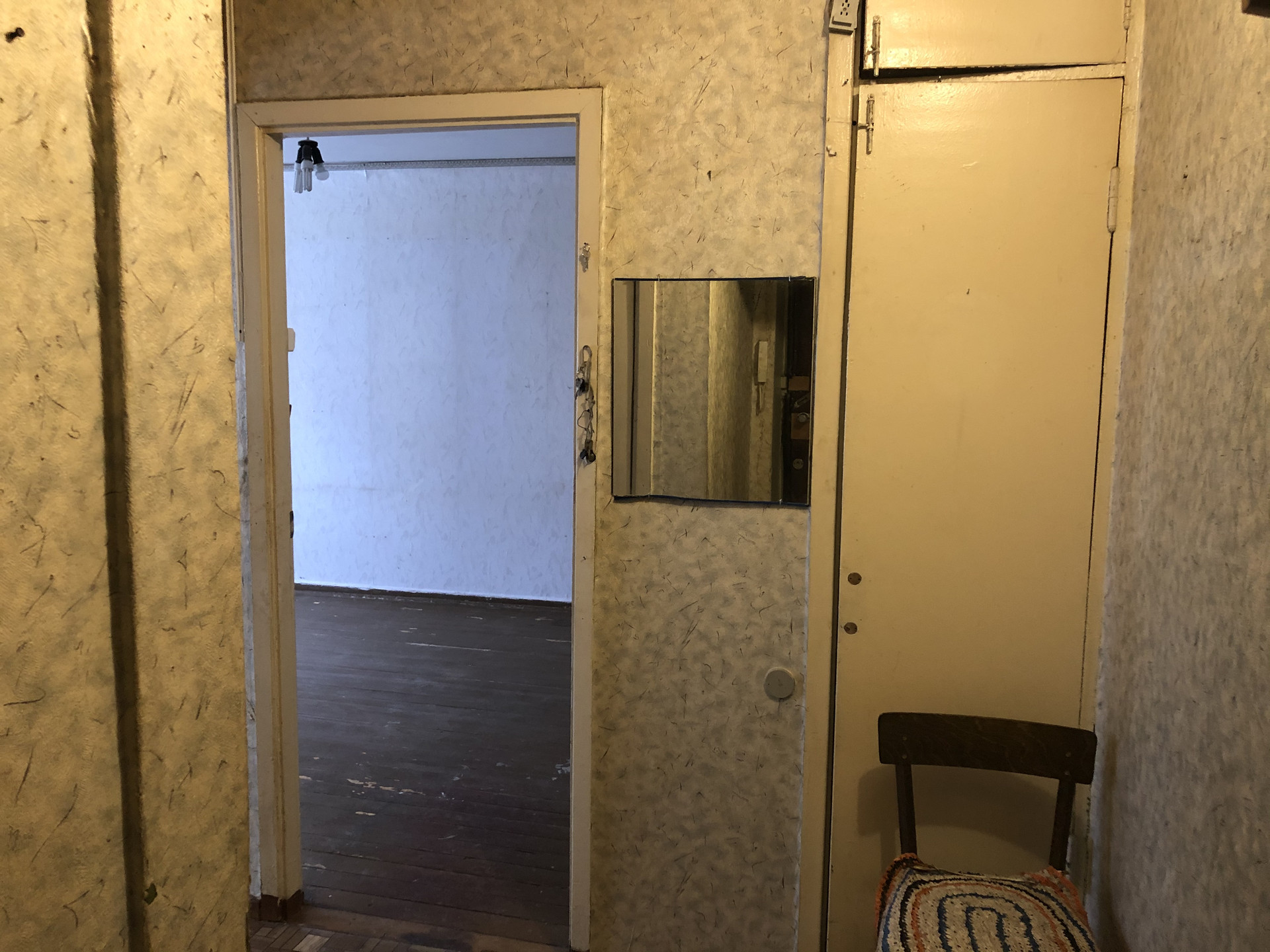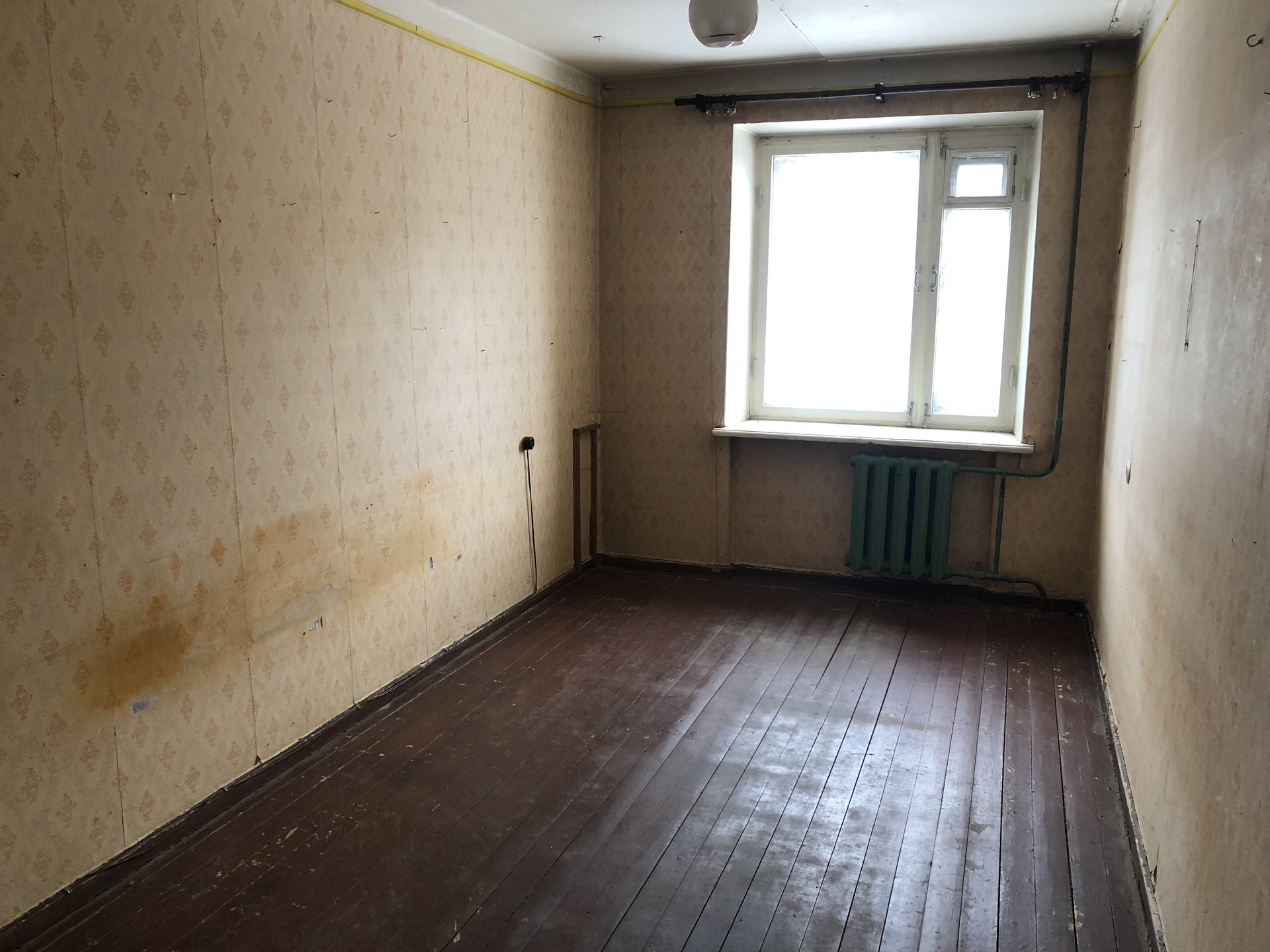 Квартира требует ремонта: окна остеклены деревянными рамами, полы окрашены краской, батареи чугунные. Комнаты изолированы.