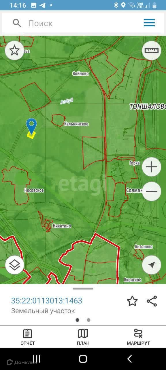 В продаже земельный участок в Тоншаловском с/п, возле д. Кальнинское.