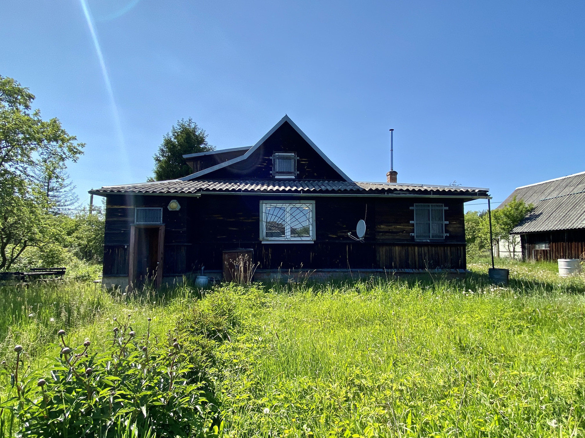 Участок располагается в 20 минутах пешком от остановки ж/д вокзала, до города 2 часа на электричке или 1,10 на автомобиле. До асфальта 300 метров, в доме есть водопровод, современные электросети, подъезд в гараж и отдельно на участок, наличие документов на баню, а так же много, очень много плодовых кустов и деревьев, 2 действующих парника, летний душ, баня, хозблок, отдельное помещение для дров.