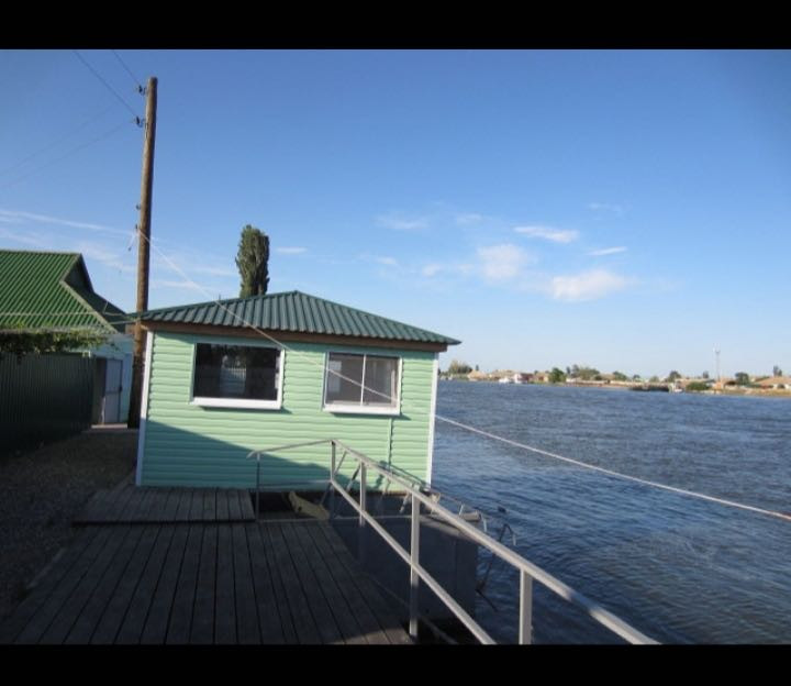 стоит водный гараж. Рядом с базой земельный участок огражденный хорошим, высоким забором с оборудованным спуском для катеров в реку. Сразу перед базой широкая река. Раскаты рядом, туристов в те края очень много приезжает и рыбы всякой полно. Находится: Астраханская обл., Икрянинский район, п. Товарный, ул. Набережная 39. Земля и дом все в собственности. По документам все на две «хозяйки» в равных долях, владение не делённое. Продаю свою часть долевого пользования целым обьектом, половину владения по документам, это значит быть долевым владельцем целого объекта. Либо, можете купить всю базу, т.е. без компаньонки. Продажа в связи с моим переездом. Через два дома от базы находится мой дом на 17 сотоках земли, в объявлениях о продаже он есть. Его тоже продаю ( можно использовать совместно с базой, там два дома, как гостевые дома, ремонт такой же как на базе отдыха, которая на берегу). Варианты обмена рассмотрю. Рассмотрю продажу по долям нескольким людям.