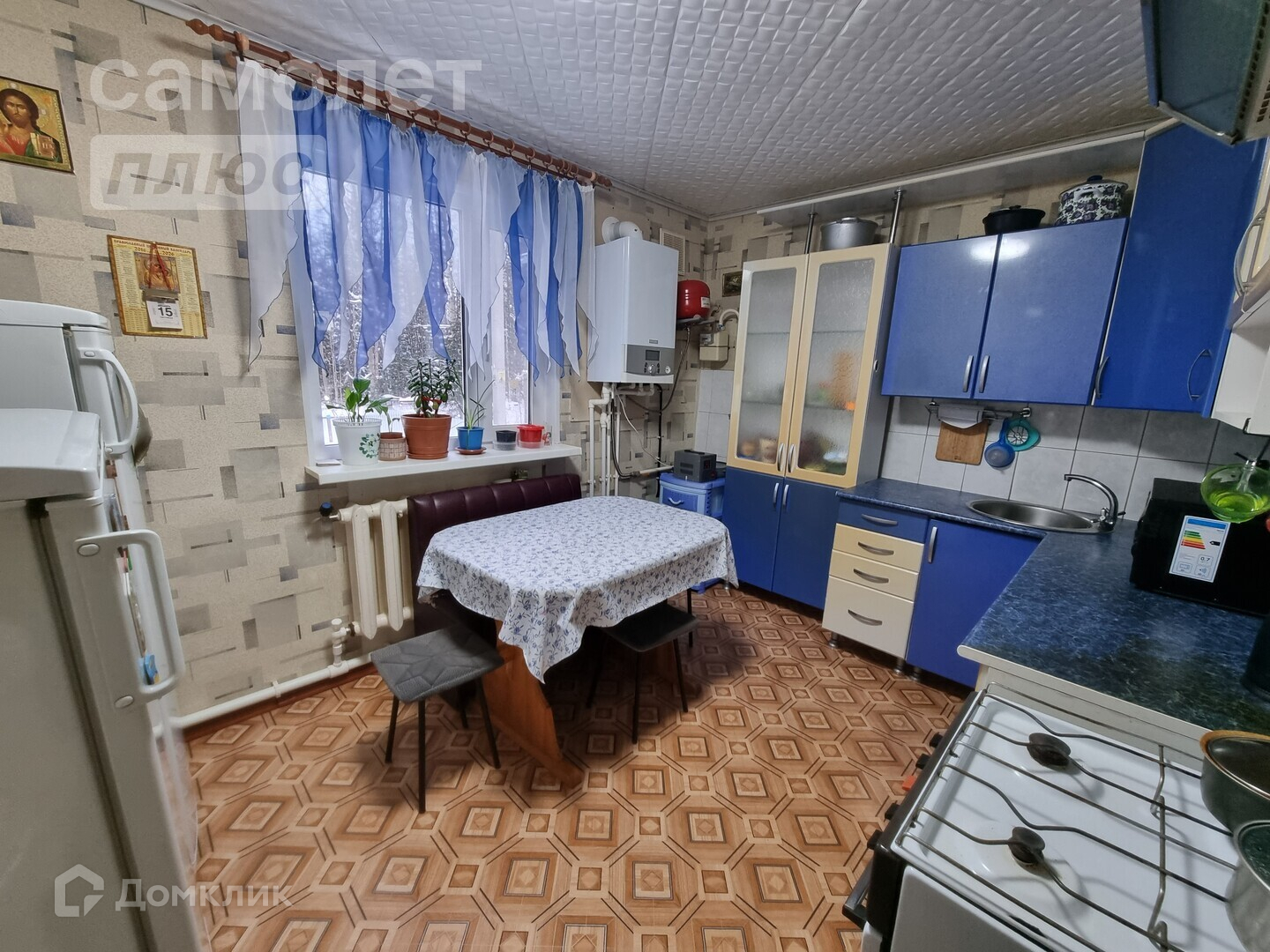 - Дом отапливается газовым котлом, по периметру дома есть батареи