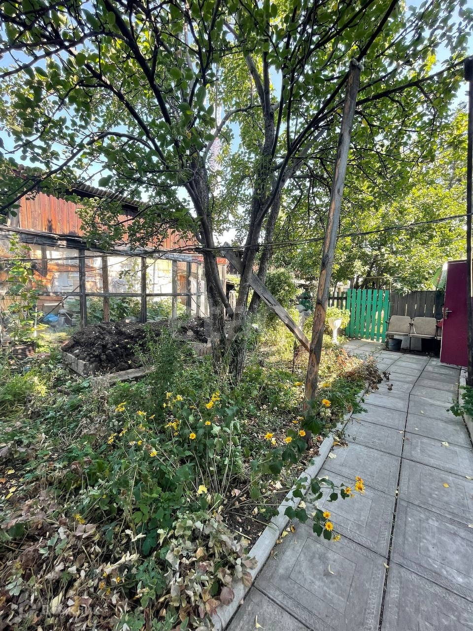 Земельный участок 10 соток. На нем расположено: баня, сарай, дровяник, холодный пристрой (для хранения заготовок, овощей на зиму). Так же на участке растет множество плодоносящих насаждений.