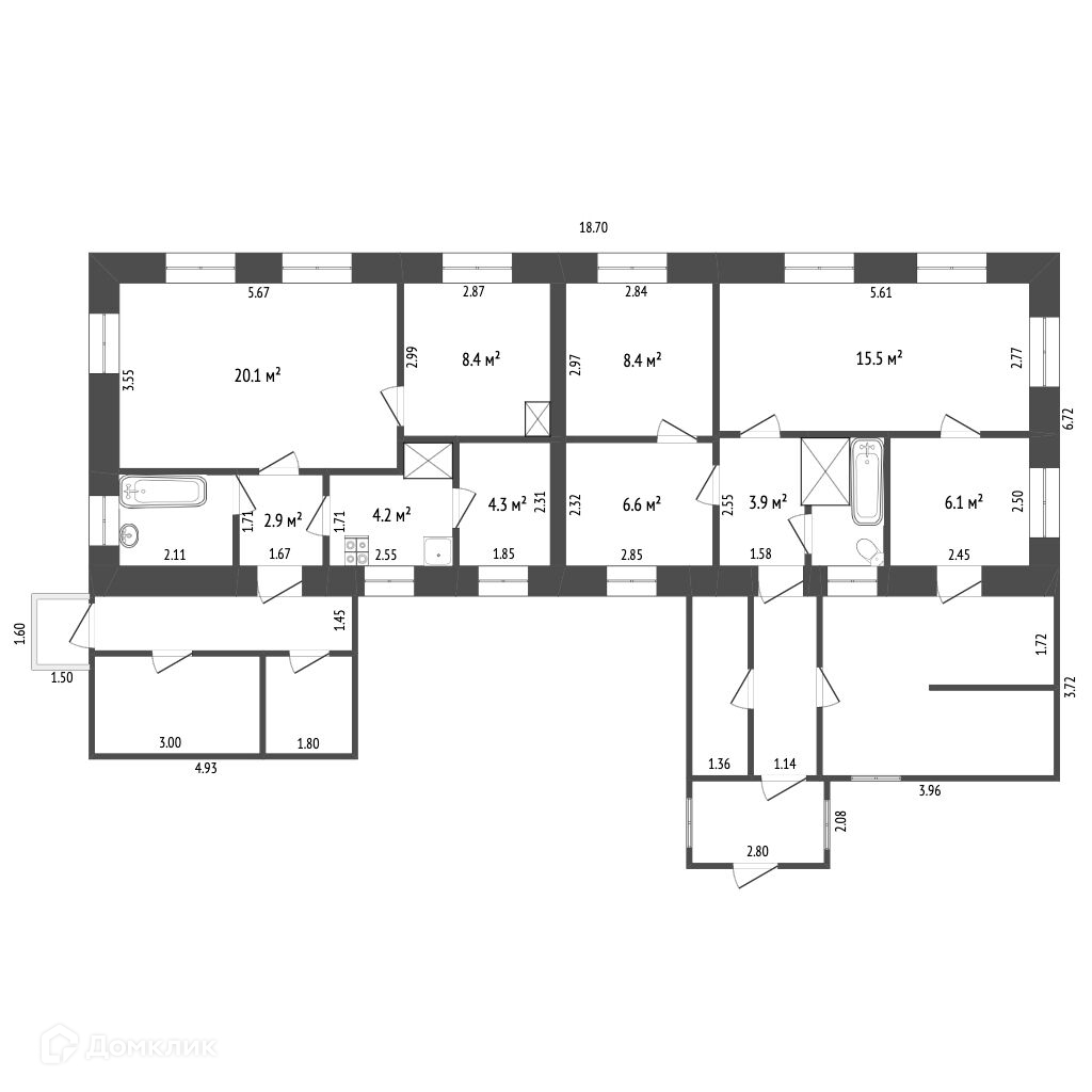 Общая площадь 57.9 м2