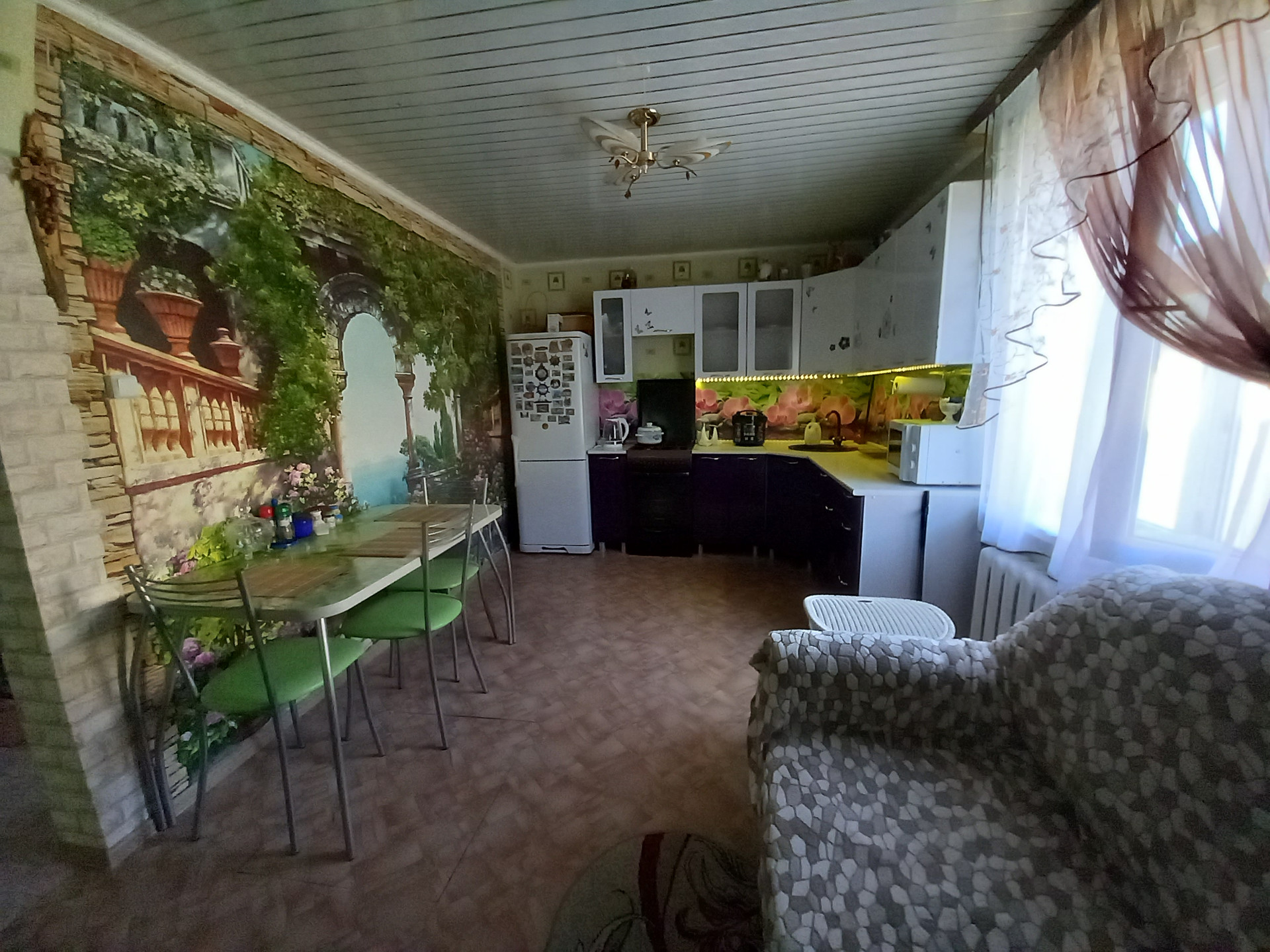 Дом находится в тихом районе, рядом детский сад, больница, школа. Огород ухожен, есть теплица и насождения.