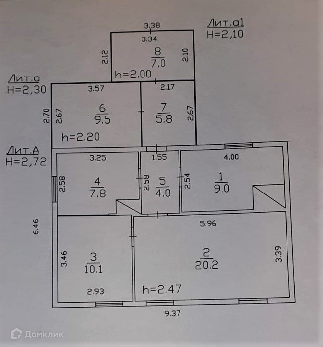 - совмещенный санузел - 9,5 кв.м.;