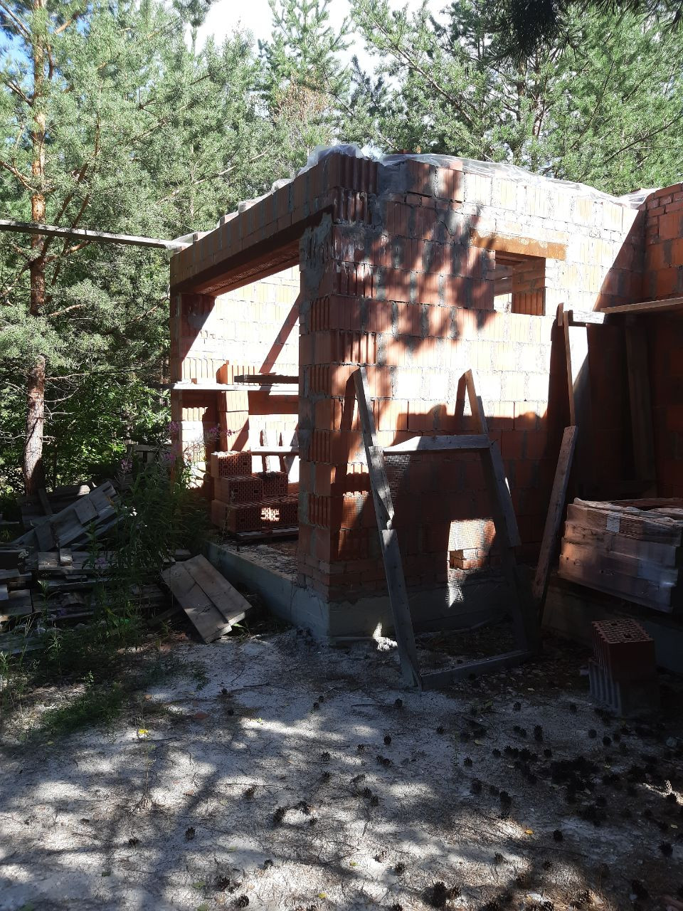 Продается земельный участок с недостроенным домом по индивидуальному проекту. Проектная документация и стройматериалы прилагаются.