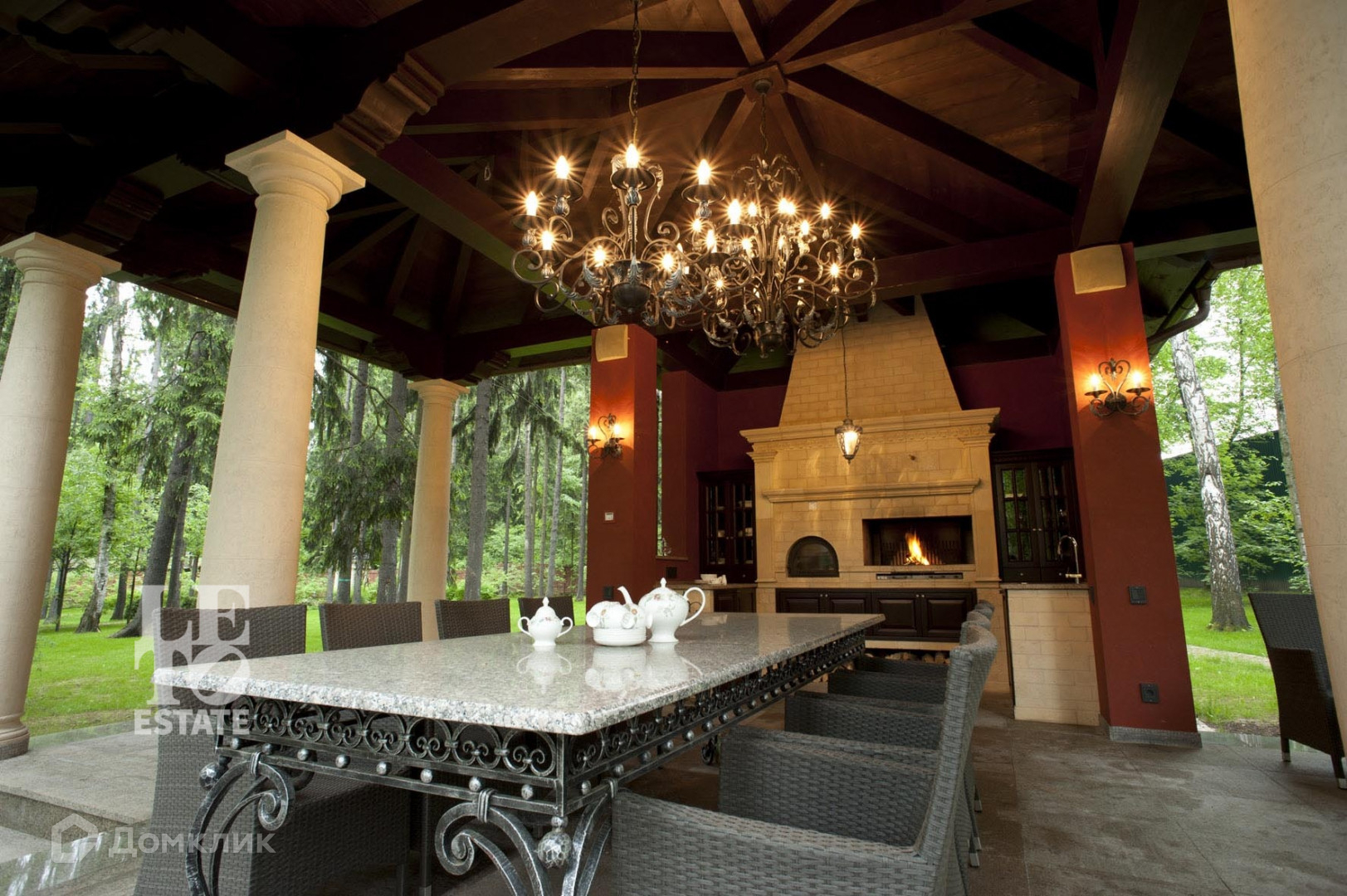 Дом расположен на великолепном лесном участке в окружении вековых елей и сосен.