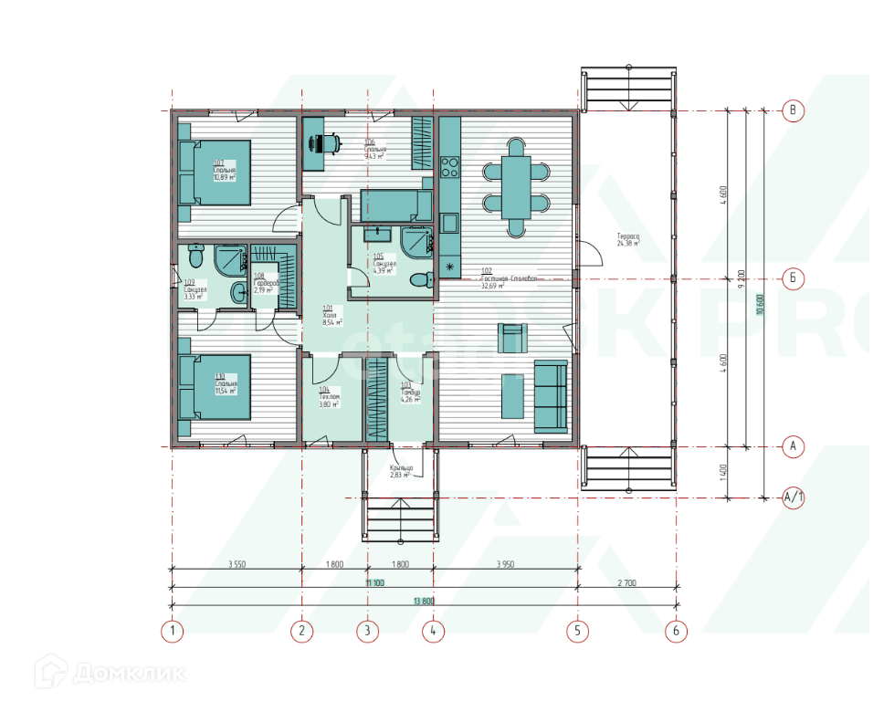 Площадь дома — 102,1 м2