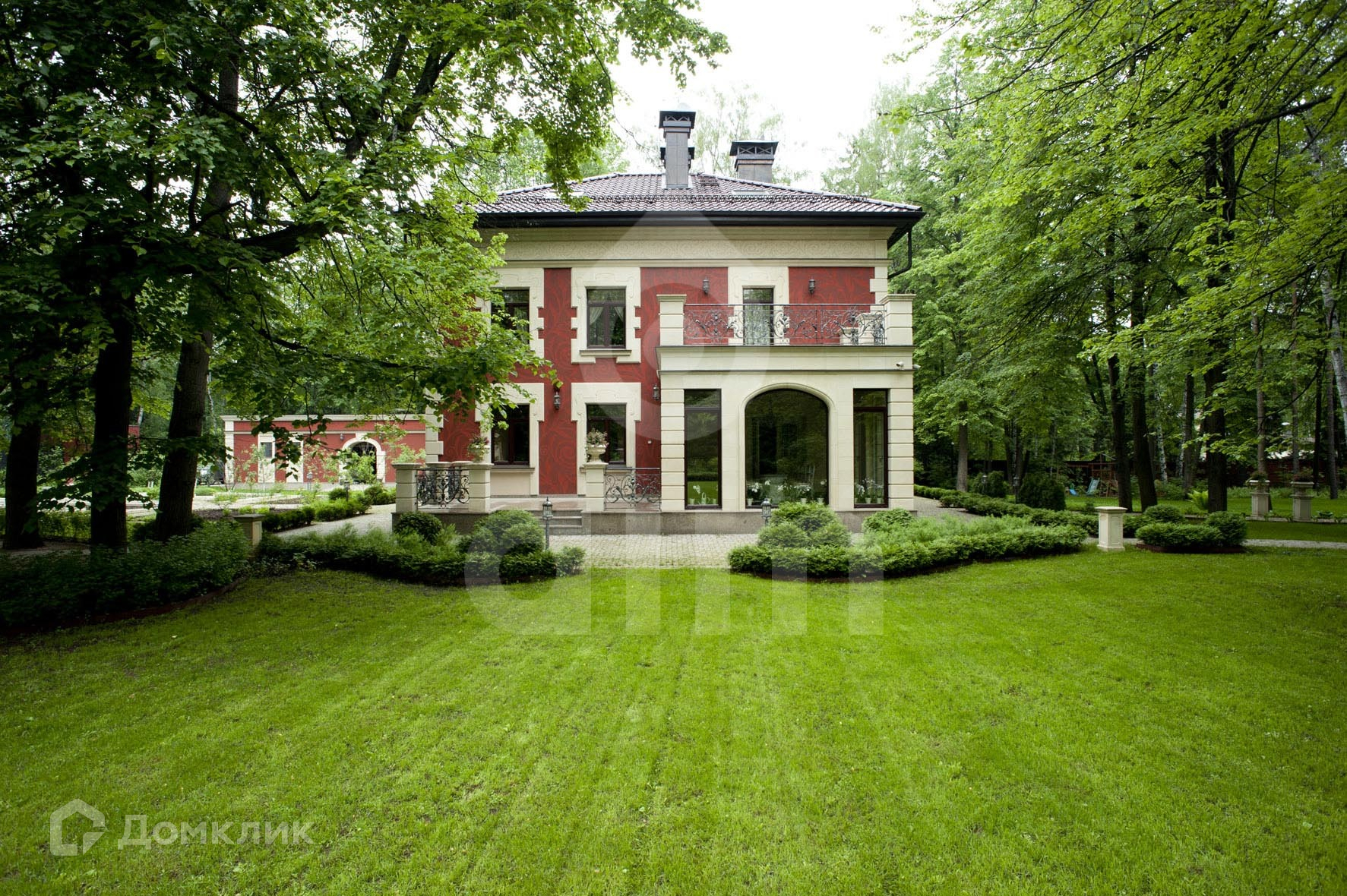 Описание этажей/уровней: Основной дом Цоколь: винная комната, служебные и технические помещения. 1 этаж: прихожая, гардеробная, с/у, гостиная с камином, кухня, столовая с выходом на террасу. 2 этаж: хозяйская спальня с гардеробной и с/у, 2 спальни с с/у, игровая комната. Мансарда: 2 спальни с с/у, кабинет. Банный комплекс с бассейном: бассейн 12,5Х4 м с противотоком, джакузи, сауна, баня, хамам, купель 2Х2, солярий, массажный кабинет, зона отдыха с небольшой кухней, бильярдная, кинозал, 2 гостевые спальни, с/у. Отдельно стоящий гараж на 2 м/м, помещение для охраны, квартира для персонала на втором этаже. Лесной участок с вековыми деревьями, выполнен ландшафтный дизайн в английском стиле, дорожки из гранитной брусчатки, авто-полив, многозональное освещение. На территории искусственный пруд 120 кв.м с водопадом и ручьем. Беседка с каменной печью и оборудованной кухней. Оранжерея в Викторианском стиле, липовая аллея, скульптуры.