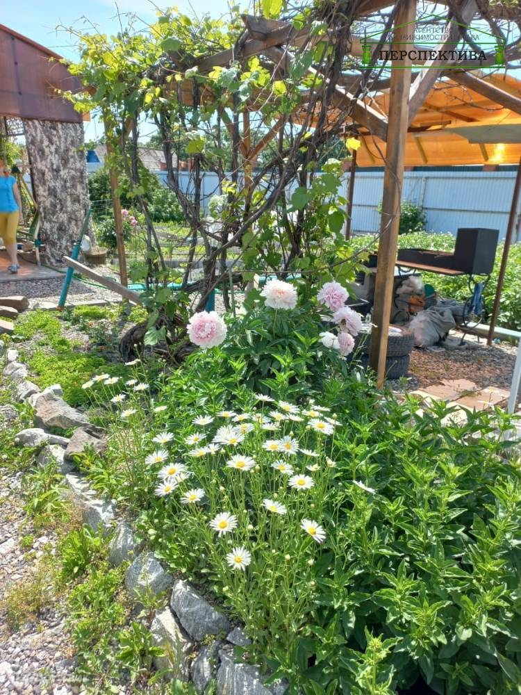На участке есть виноградник, посажены плодово-ягодные насаждения: яблони, жимолость, малина, смородина, рябина, крыжовник, вишня.
