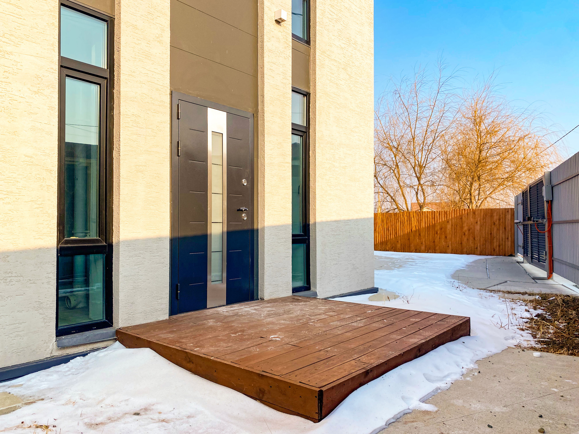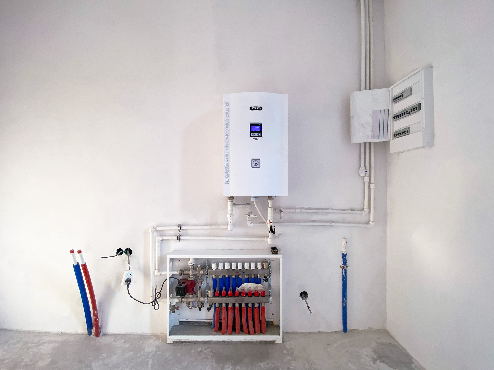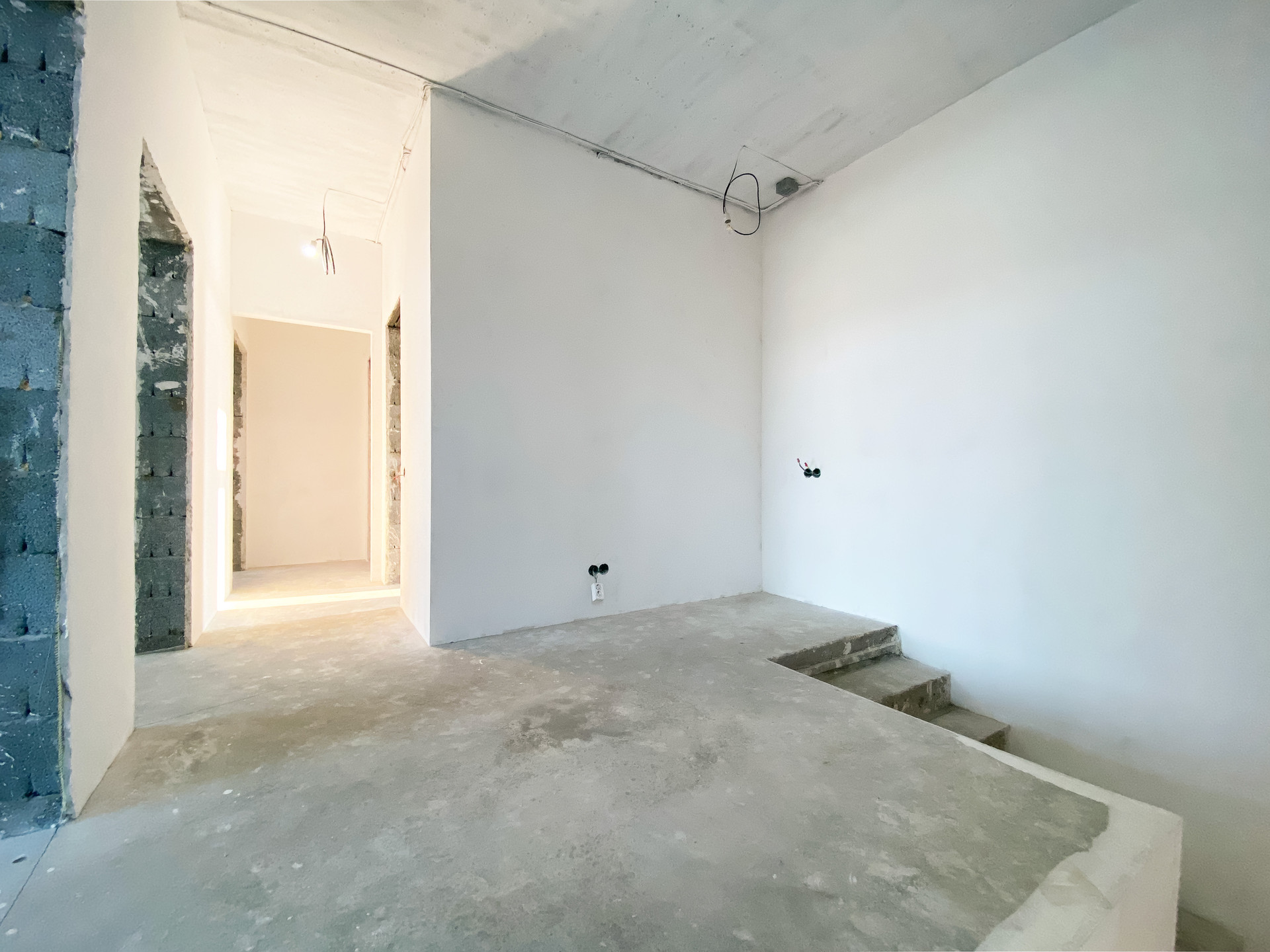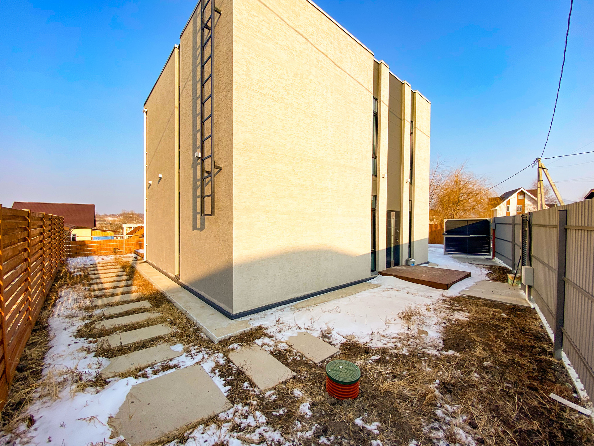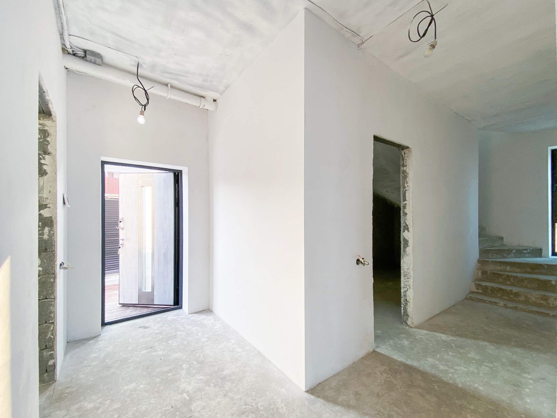 Внутри дома сделана отделка WHITE BOX, проведены все коммуникации, установлен котел ZOTA и теплые водяные полы на обоих этажах. Лестница литая железобетонная