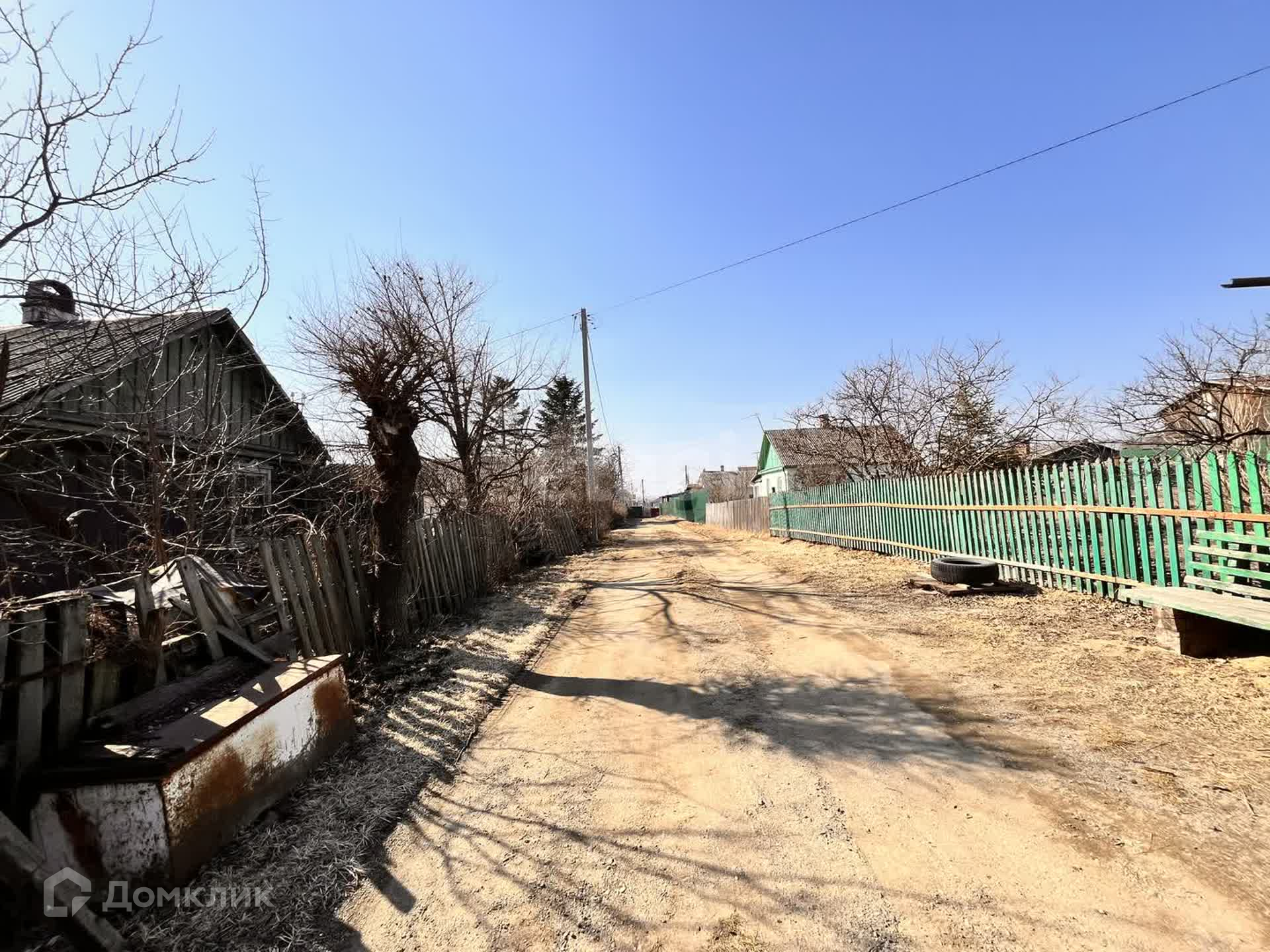 Территория участка огорожена деревянным забором и сеткой рабица.