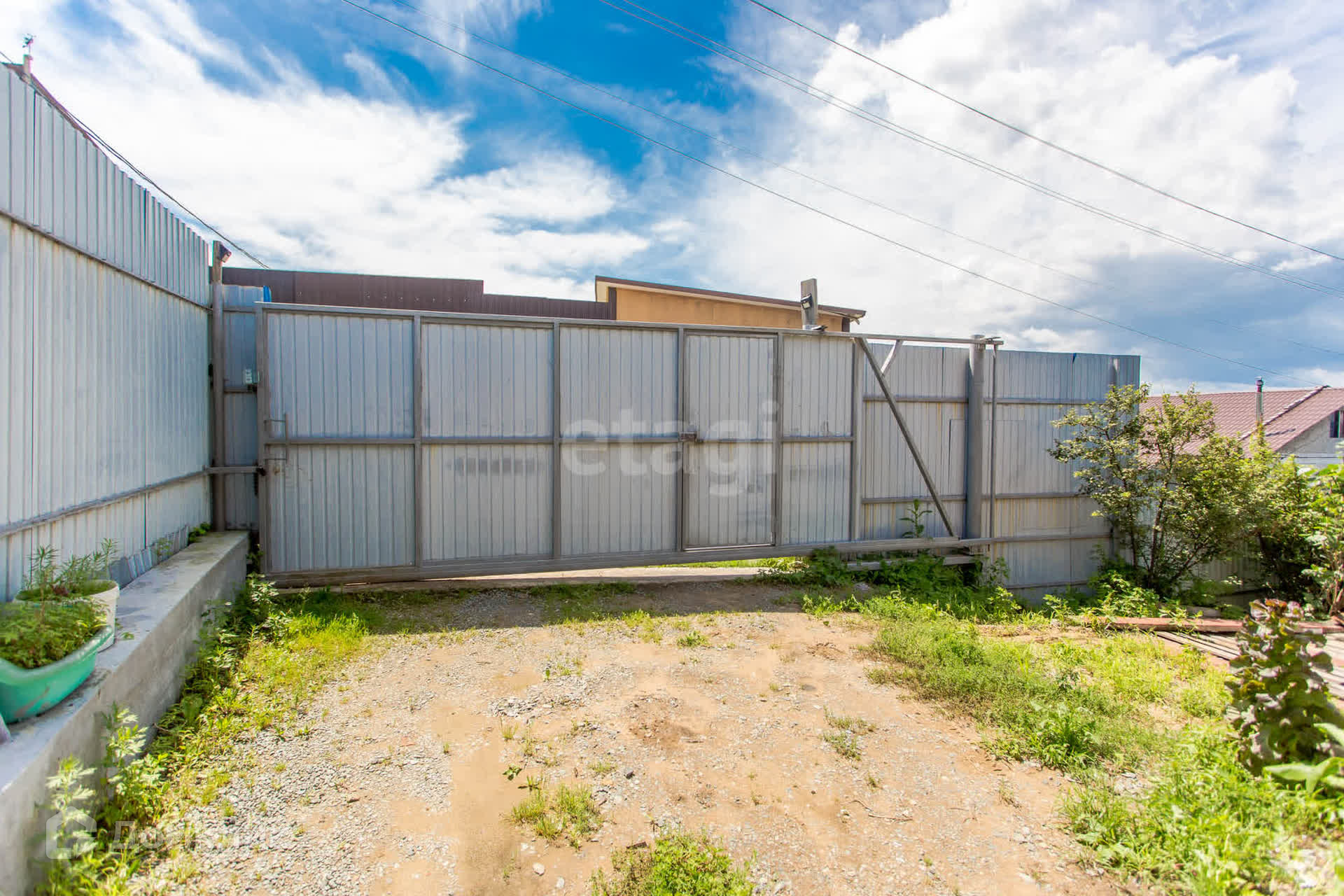 - участок огорожен забором- проф. настил+ сетка рабица, ворота откатные.