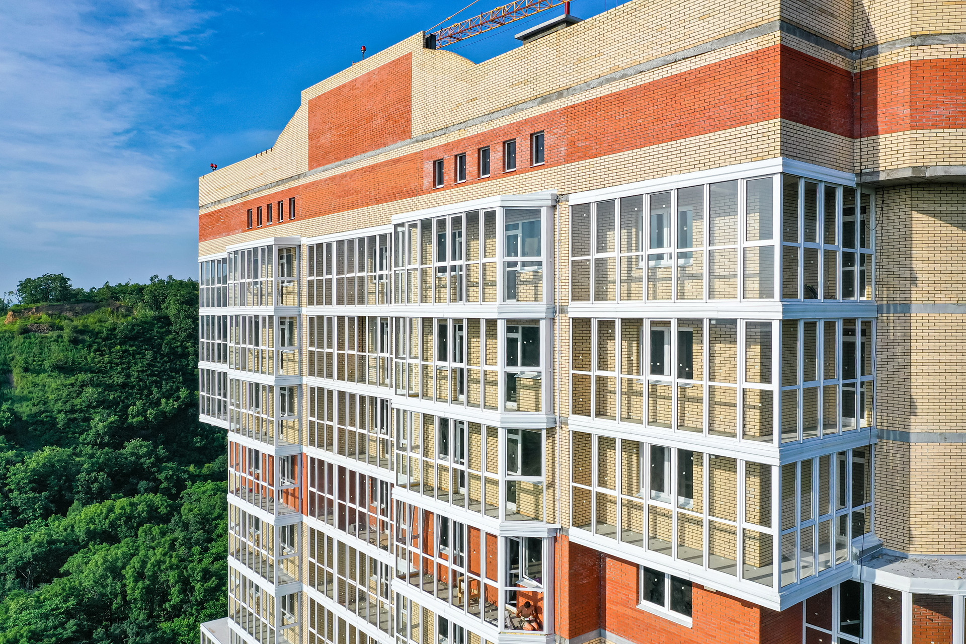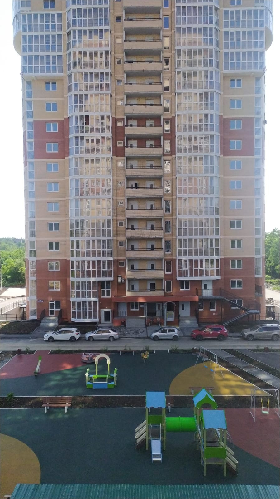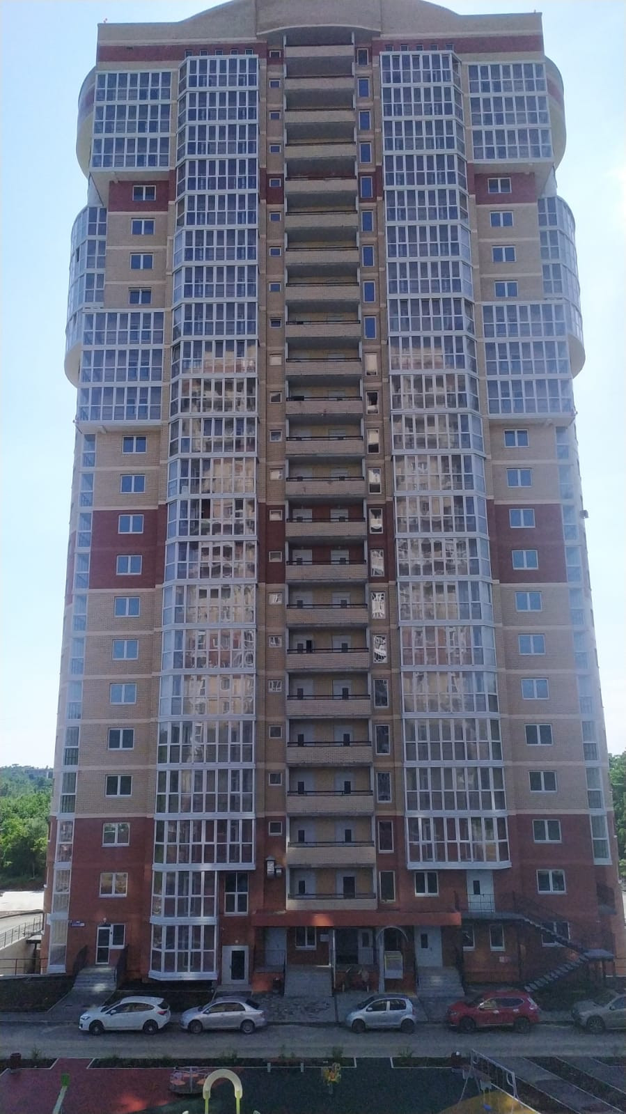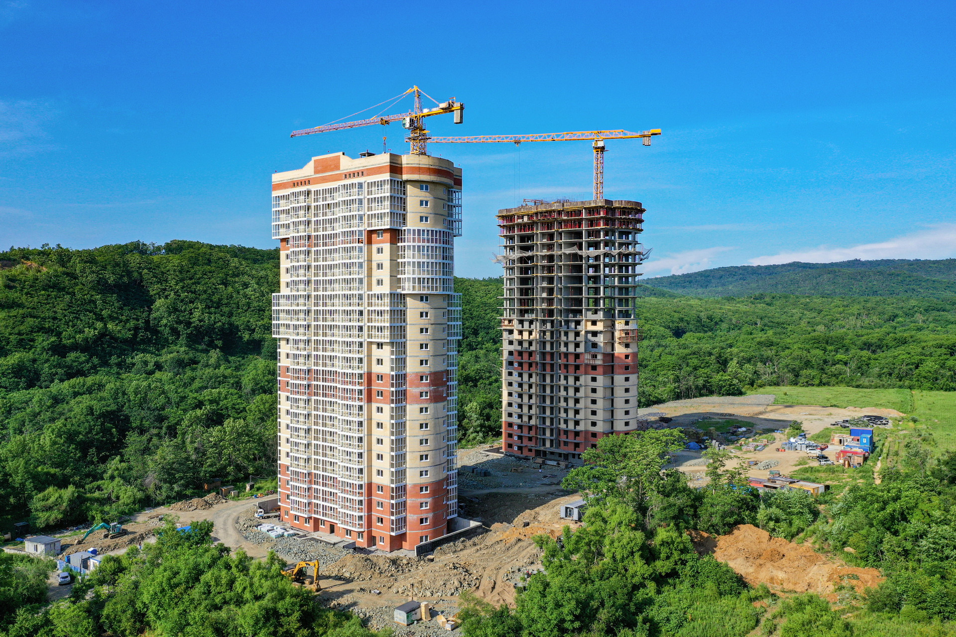 Первый комплекс состоит из двух 25 этажных домов и большой открытой парковки на 220 а/м. Дом № 1 введен в эксплуатацию. 2-й дом в стадии активного строительства, возведены все этажи, срок его сдачи IV кв. 2022 г. Готовность второго дома составляет 70%.