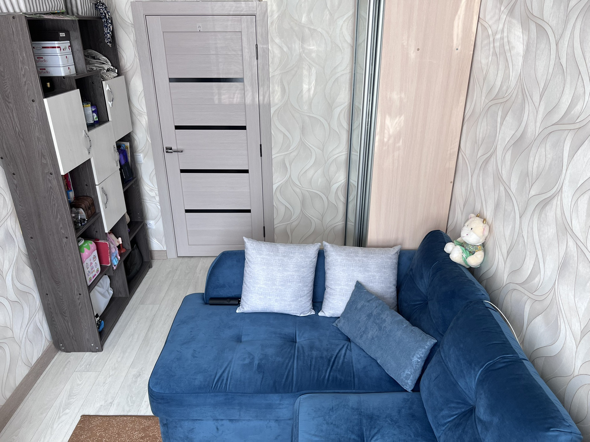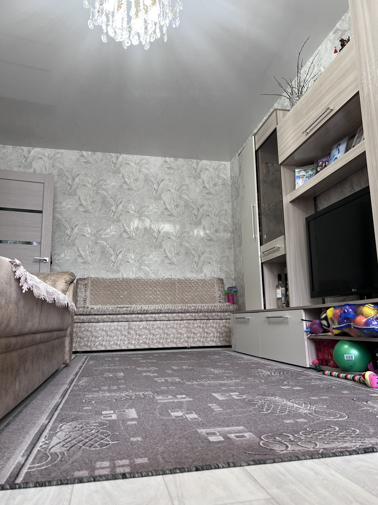 - на полу устлан линолеум, полы по всей квартире перестелены;